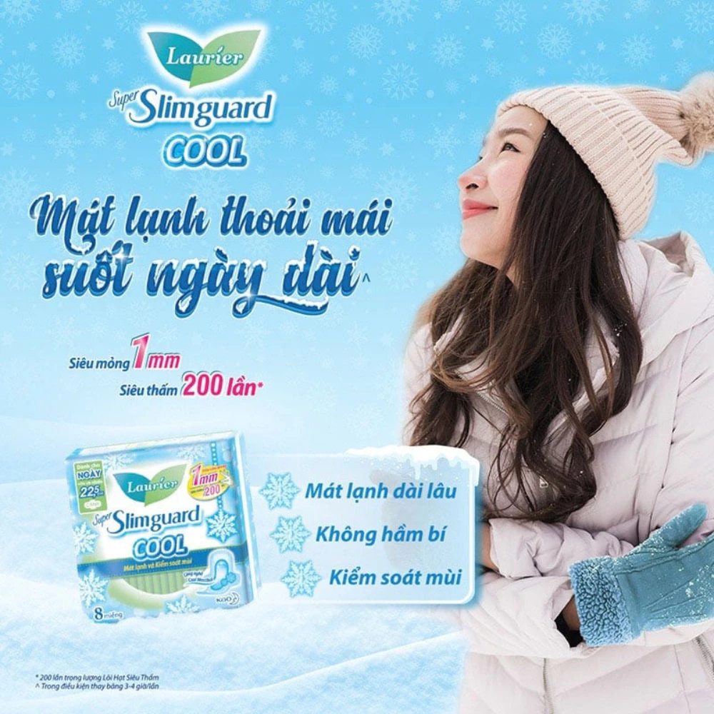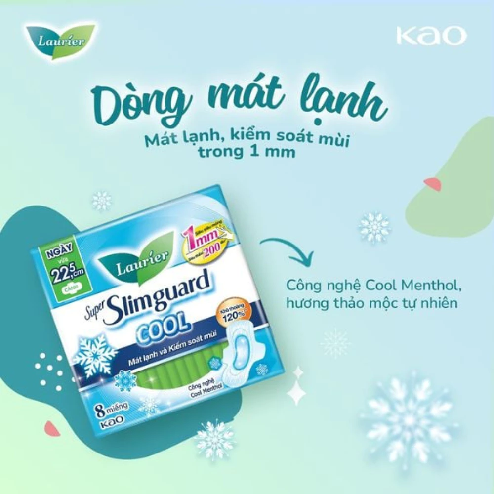 Băng vệ sinh Laurier siêu mỏng mát lạnh và kiểm soát mùi là dòng sản phẩm băng vệ sinh mát lạnh đến từ thương hiệu chăm sóc cơ thể Laurier thuộc tập đoàn Kao Nhật Bản, áp dụng công nghệ Cool Menthol từ Nhật Bản mang lại cảm giác mát lạnh tức thì và không hầm bí suốt ngày dài, đồng thời kiểm soát mùi hiệu quả, giúp bạn không còn nỗi lo mùi khó chịu trong ngày đèn đỏ.