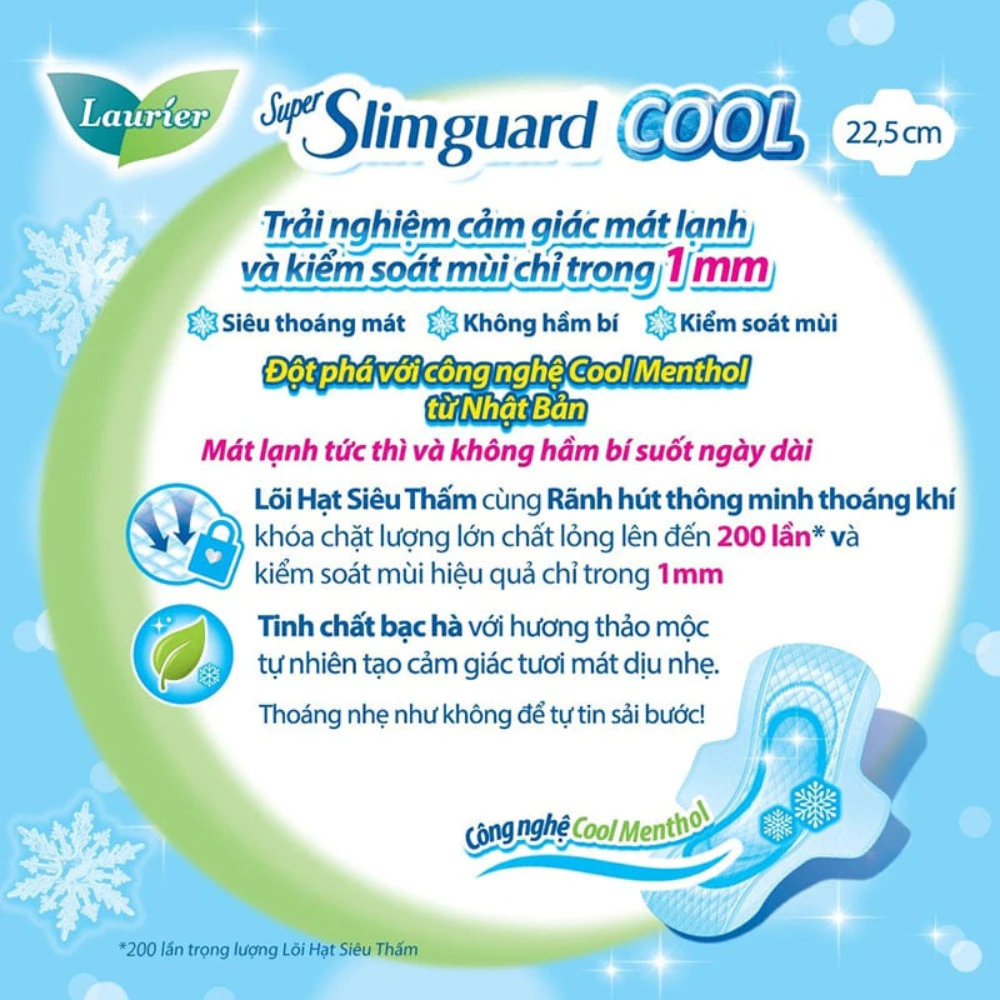 Băng vệ sinh Laurier siêu mỏng mát lạnh và kiểm soát mùi 22.5cm 8/16 miếng.