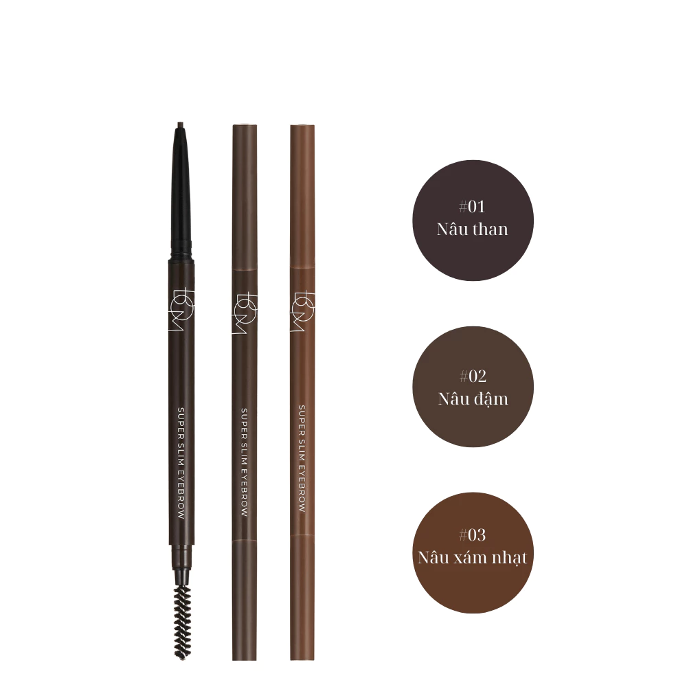 Chì kẻ mày siêu mảnh lâu trôi B.O.M Super Slim Eyebrow với đầu kẻ siêu mảnh chỉ 1.5mm giúp tạo khuôn và định hình chân mày sắc nét hơn.