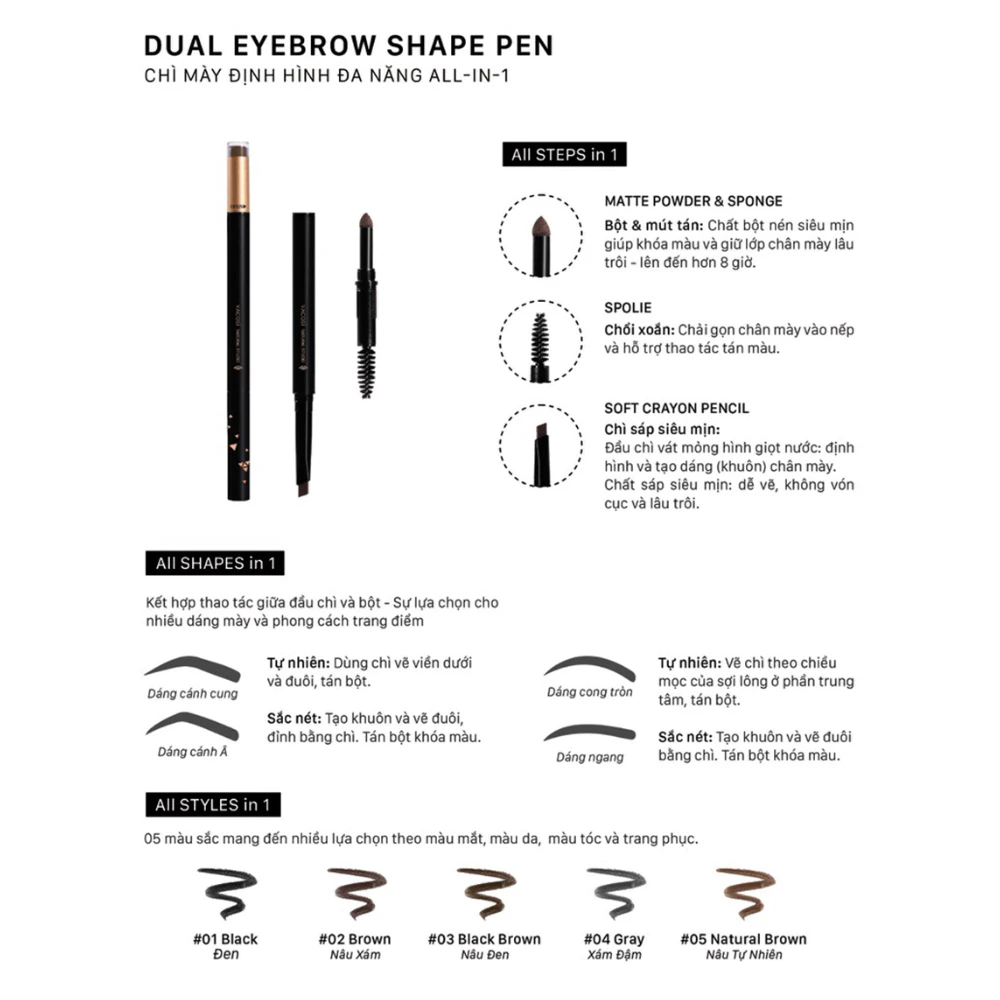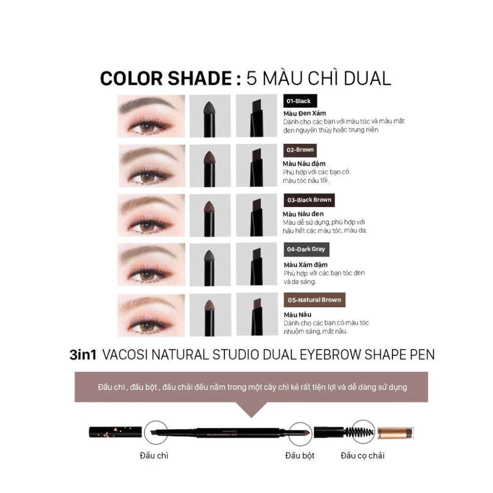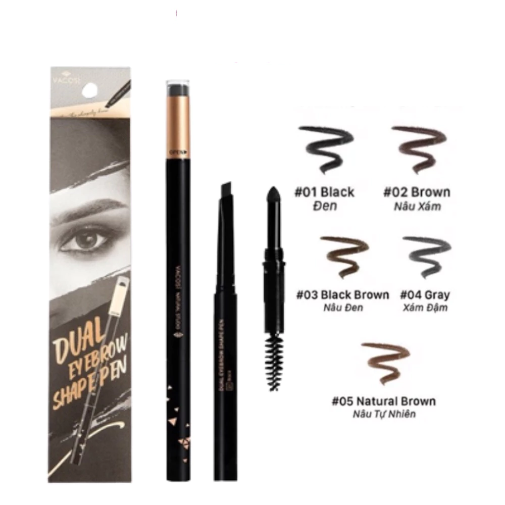 Chì mày Vacosi định hình đa năng - 01 đen/02 nâu xám/03 nâu đen/04 xám đậm/05 nâu tự nhiên 5ml