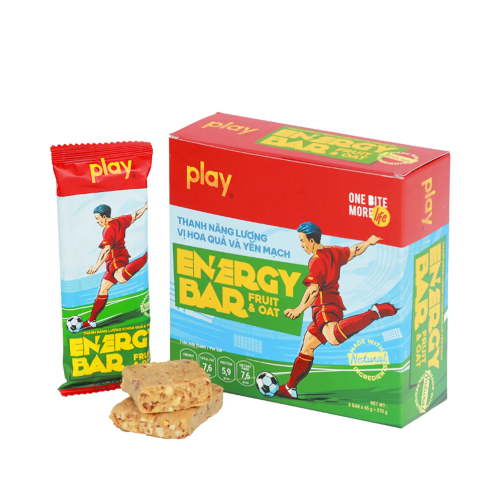Thanh năng lượng PLAY phiên bản 2.0 là sản phẩm giúp bổ sung năng lượng cho người chơi thể thao, người có cường độ làm việc cao. Sản phẩm chứa những dưỡng chất từ trái cây và các loại hạt giúp cung cấp dinh dưỡng cân bằng cho cơ thể. Sản phẩm 100% vegan Bổ sung nguồn năng lượng bền bỉ Thanh nhỏ gọn dễ mang theo trong mỗi hành trình * Thông tin sản phẩm: - Thương hiệu: PLAY - Xuất xứ: Việt Nam - Hạn sử dụng: 12 tháng *Phân loại: Combo 3 thanh năng lượng PLAY vị trái cây và yến mạch 135g Combo 3 thanh năng lượng PLAY vị cam và cacao 135g Combo 3 thanh năng lượng PLAY vị macca và bơ đậu phộng 135g Hộp 6 thanh năng lượng PLAY vị trái cây và yến mạch 270g Hộp 6 thanh năng lượng PLAY vị cam và cacao 270g Hộp 6 thanh năng lượng PLAY vị macca và bơ đậu phộng 270g Hộp 12 thanh năng lượng PLAY vị trái cây và yến mạch 540g Hộp 12 thanh năng lượng PLAY vị cam và cacao 540g Hộp 12 thanh năng lượng PLAY vị macca và bơ đậu phộng 540g * Thành phần: – Vị macca & bơ đậu phộng: Bơ đậu phộng (21,4%), mạch nha, tinh bột khoai mì, hạt mắc ca (10%), yến mạch, đậu phộng, mật mía, bột đạm đậu nành, bột đậu phộng, cacao ngòi, bỏng gạo, chất xơ tiêu hóa, dầu thực vật, glycerol thực vật, chất nhũ hóa gốc đậu nành, chất điều chỉnh độ acid, muối, chiết xuất hương thảo. – Vị cam cacao: Hạt điều (21,5%), vỏ cam (10%), xoài, nho khô, bơ đậu phộng, bột cacao, tinh bột khoai mì, bột đạm đậu nành, mật mía, mạch nha, bỏng gạo, bơ cacao, chất xơ tiêu hóa, dầu thực vật, glycerol thực vật, chất nhũ hóa gốc đậu nành, chất điều chỉnh độ acid, muối, tinh dầu vỏ cam, chiết xuất hương thảo. – Vị trái cây & yến mạch: Hạt điều (23%), nam việt quất (15%), mơ (11,5%), nho khô (11,5%), yến mạch, tinh bột khoai mì, bột đạm đậu nành, mạch nha, mật mía, bơ đậu phộng, bỏng gạo, chất xơ tiêu hóa, dầu thực vật, glycerol thực vật, chất nhũ hóa gốc đậu nành, chất điều chỉnh độ acid, muối, chiết xuất hương thảo. * Bảo quản: Bảo quản trong điều kiện mát và khô (không nên bảo quản trong tủ lạnh sẽ làm bánh bị khô) * Sử dụng: Dùng sản phẩm ngay sau khi mở bao bì * Thông tin cảnh báo: Có chứa hạt điều, đậu phộng và đậu nành; có chứa gluten trong yến mạch #banh #hat #thanhnangluong #thanhnangluongrongbien #thanhnanglungvicamtraicay #playenergy #45g #135g #270g #540g #combo3thanh #combo6thanh #combo12thanh #hop6thanh #hong12thanh #virongbien #viphomai #vidaudo #vikhoga #thanhnangluongplay #playenergybar #traicayyenoach #energybartraicay #energybaryenoach #snacktraicay #thanhnangluongcamcacao #energybarcamcacao #camcacaodinhduong #snackcamcacao #thanhnangluongmaccabodauphong #maccabodauphong #energybarmacca #snackbodauphong #playbarhealthy #snacklanhmanh #sanphamhealthynangluong #monannangluong #blackpinks #blackpinksvn #blackpinkscom #blackpinkscomvn #blackpink #blackpinkvn #blackpinkcom #blackpinkcomvn #blps #blpsvn #blpscom #blpscomvn #blp #blpvn #blpcom #blpcomvn