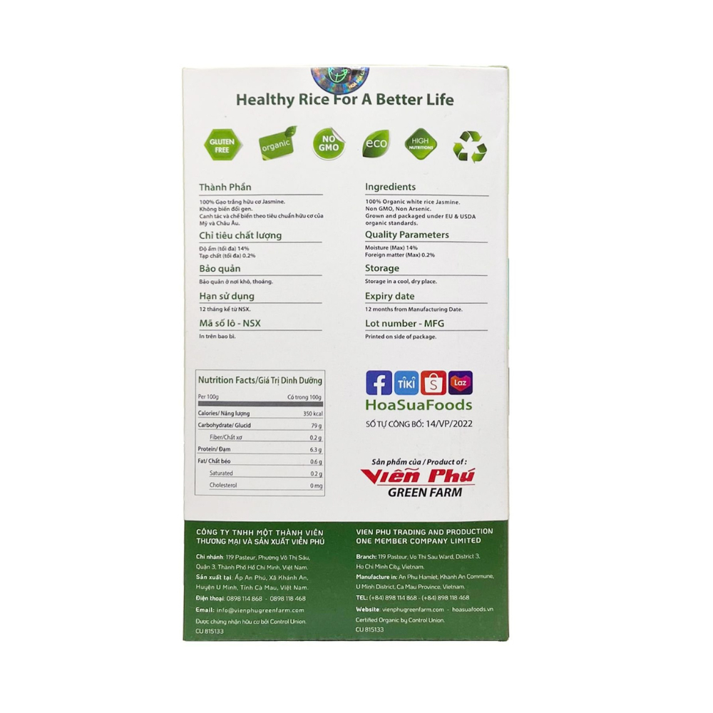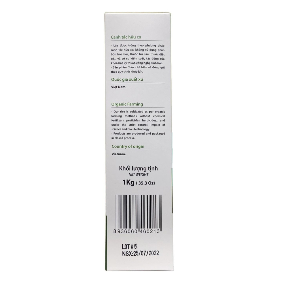 Gạo trắng hữu cơ Jasmine Hoa Sữa 1kg. * Giới thiệu sản phẩm: Gạo trắng hữu cơ Hoa Sữa của thương hiệu thực phẩm hữu cơ HOASUAFOODS được lòng người tiêu dùng bởi cơm nấu ra mềm xốp, có vị ngọt tự nhiên và mùi thơm đặc trưng, mang đến sự ngon miệng cho bất kỳ bữa ăn nào. Chưa kể, gạo không chứa hóa chất, đạt tiêu chuẩn hữu cơ của quốc tế nên bảo đảm an toàn cho sức khỏe và chứa hàm lượng dinh dưỡng cao. * Thành phần: 100% gạo trắng hữu cơ Jasmine. Được từ giống lúa thơm Jasmine. Gluten free, Non-GMO. * Công dụng sản phẩm: - Không chứa Cholesterol. - Chỉ số đường huyết trung bình thấp. - Đạt chứng nhận hữu cơ của Mỹ Và Châu Âu. - 100% không hóa chất. - 100% không thuốc bảo vệ thực vật. - 100% không chất bảo quản. - 100% không biến đổi gen (Non – GMO). * Hướng dẫn sử dụng: Vo gạo một lần. Cho gạo và nước theo tỷ lệ 1:1. Cho vài giọt dầu Oliu và ít muối biển để vị cơm ngon hơn. * Lưu ý và cách bảo quản: - Nơi khô ráo thoáng mát. Tránh tiếp xúc trực tiếp với ánh nắng mặt trời. * Thông tin sản phẩm: - Thương hiệu: HOASUA FOODS. - Xuất xứ: Việt Nam. - Nơi sản xuất: Việt Nam. - Hạn sử dụng: 24 tháng kể từ ngày sản xuất. #gaotrang #gaotrangjasmine #huuco #gaohuucojasmine #gaotranghuucojasmine #gaohoasuajasmine #gaotranghoasuajasmine #jasmine #gaotranghoasuahuuco #hoasuafood #hoasuafoodvietnam #hoasuafooduytin #hoasuafoodchinhhang #hoasuafood100% #hoasuafoodchatluong #gaodeo #blackpinksvn #blackpinkscom #blackpinkscomvn #blackpink #blackpinkvn#blackpinkcom #blackpinkcomvn #blps #blpsvs #blpscom #blpscom #blp #blpvn #blpcom #blpcomvn