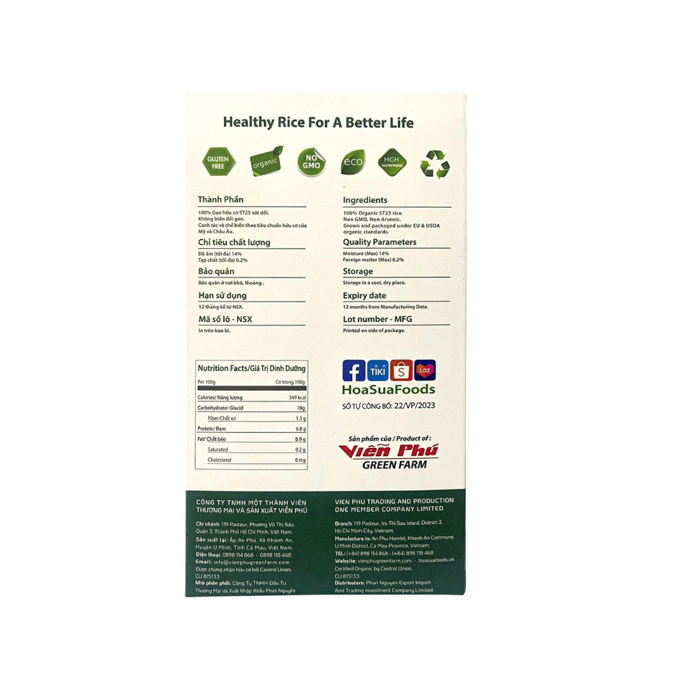 Gạo trắng xát dối hữu cơ ST25 Hoa Sữa 1kg. * Giới thiệu sản phẩm: Gạo trắng xát dối hữu cơ ST25 Hoa Sữa 1kg là giống gạo trắng hạt dài đạt giải thưởng Gạo ngon nhất thế giới năm 2019 và 2023, hạt gạo nhỏ, dài, nấu chín thành cơm mềm, dẻo, ráo, không bị khô cơm khi để nguội. Cơm ST25 mang vị ngọt tự nhiên, thơm thoảng mùi lá dứa. * Thành phần: Thành phần: 100% gạo trắng xát dối hữu cơ ST25. Được trồng từ giống lúa ST25, tạo nên loại gạo có chất lượng ngon nhất thế giới. Gluten free, Non-GMO. Không sử dụng hóa chất trong canh tác, không dùng chất bảo quản trong chế biến. * Công dụng sản phẩm: - Không chứa Cholesterol. - Chỉ số đường huyết trung bình thấp. - Đạt chứng nhận hữu cơ của Mỹ Và Châu Âu. - 100% không hóa chất. - 100% không thuốc bảo vệ thực vật. - 100% không chất bảo quản. - 100% không biến đổi gen (Non – GMO). * Hướng dẫn sử dụng: Vo gạo một lần. Cho gạo và nước theo tỷ lệ 1:1. Cho vài giọt dầu Oliu và ít muối biển để vị cơm ngon hơn. * Lưu ý và cách bảo quản: - Nơi khô ráo thoáng mát. Tránh tiếp xúc trực tiếp với ánh nắng mặt trời. * Thông tin sản phẩm: - Thương hiệu: HOASUA FOODS. - Xuất xứ: Việt Nam. - Nơi sản xuất: Việt Nam. - Hạn sử dụng: 24 tháng kể từ ngày sản xuất. #gaotrang #gaotrangxatdoi #huuco #gaohuucoxatdoi #gaotranghuucoxatdoi #gaohoasuaxatdoi #gaotranghoasuaxatdoi #gaohuucost25 #gaoxatdoist25 #gaotrangxatdoist25 #gaotrangst25hoasua #gaotranghoasuahuuco #hoasuafood #hoasuafoodvietnam #hoasuafooduytin #hoasuafoodchinhhang #hoasuafood100% #hoasuafoodchatluong #gaodeo #blackpinksvn #blackpinkscom #blackpinkscomvn #blackpink #blackpinkvn#blackpinkcom #blackpinkcomvn #blps #blpsvs #blpscom #blpscom #blp #blpvn #blpcom #blpcomvn