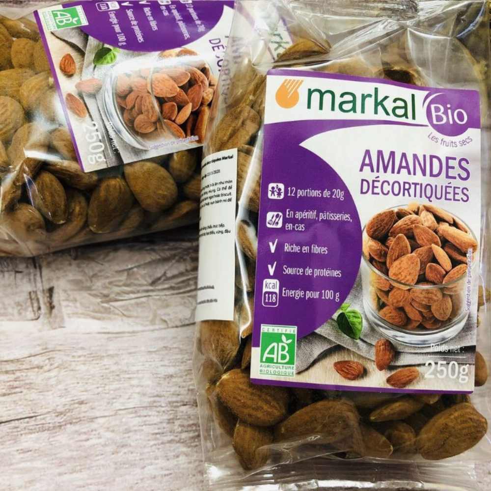 Hạt hạnh nhân/hạt mè vàng hữu cơ đã tách vỏ cứng Markal 250g. Hạt hạnh nhân/hạt mè vàng hữu cơ đã tách vỏ cứng Markal là sản phẩm của thương hiệu Markal đến từ Pháp. Hạt hạnh nhân và hạt mè vàng giàu chất xơ giúp phòng chống và giảm táo bón, giúp kiểm soát bệnh tiểu đường tuýp 2, giảm béo phì và là nguồn cung cấp canxi, vitamin E, B1, sắt. * Thành phần: 100% hạt hạnh nhân/hạt mè vàng đã tách vỏ. * Ưu điểm sản phẩm: - Giàu canxi : góp phần vào sự duy trì sức khỏe của xương và răng. - Chứa nhiều protein thực vật và chất chống oxi hoá mạnh ngăn ngừa và giảm thiểu sự hình thành các tế bào gốc tự do, kích thích lưu thông tuần hoàn máu, giảm cholesterol xấu. - Chứa nhiều vitamin B, cụ thể là vitamin B9, cần thiết cho sự phân chia tế bào, và các khoáng vi lượng (chất sắt giúp vận chuyển hồng cầu và oxi cho các mô, chất kẽm chống oxy hóa...). - Chứa hoạt chất phyto-oestrogene (sesamin và sesamolin) : hỗ trợ duy trì hoạt động tim mạch lành mạnh, cải thiện triệu chứng khó chịu trong thời kỳ tiền mãn kinh ở phụ nữ. - Đối với phụ nữ sau khi sinh, mè là thành phần không thể thiếu để chế biến các món ăn, súp, chè, sữa có tính lợi sữa vừa an toàn vừa hiệu quả. * Công dụng: - Giúp giảm mệt mỏi, tăng cường các chức năng của hệ thần kinh và cơ bắp, duy trì sức khỏe cho xương và răng. - Duy trì sức khỏe của xương và răng. - Hỗ trợ cải thiện tuần hoàn tim mạch, tái tạo phục hồi làn da, tăng miễn dịch cho cơ thể. - Hỗ trợ duy trì hoạt động tim mạch lành mạnh, cải thiện triệu chứng khó chịu trong thời kỳ tiền mãn kinh ở phụ nữ. * Hướng dẫn sử dụng: Hạt hạnh nhân: - Trộn với ngũ cốc trong bữa ăn sáng. - Làm sữa hạt - Nấu chè, làm bánh. - Ăn trực tiếp. Hạt mè vàng: - Có thể dùng ngay hoặc rang trước khi dùng. Rắc một ít lên xà lách trộn, sữa chua, các món ăn mặn như cá, thịt... - Xay nhuyễn thành bột làm chè, súp, bổ sung trong bột làm bánh mì, bánh ngọt, thức ăn dặm cho bé... - Làm sữa hạt. * Lưu ý: - Bảo quản nơi khô ráo, thoáng mát. - Tránh ánh nắng trực tiếp và nơi ẩm ướt. - Để xa tầm tay trẻ em. * Thông tin sản phẩm: - Trọng lượng: 250g. - Thương hiệu: Markal. - Xuất xứ thương hiệu: Pháp. - Sản xuất tại: Pháp. - Hạn sử dụng: 16 tháng kể từ ngày sản xuất. #hathanhnhan #hatmevang #hanhnhan #mevang #hathanhnhantachvo #hatmevangtachvo #hanhnhantachvocung #hathanhnhanphap #hanhnhanphap #hatmevangphap #mevangphap #hanhnhanhuuco #hathanhnhanhuuco #mevanghuuco #hatmevanghuuco #hanhnhanmarkal #hathanhnhanmarkal #mevangmarkal #hatmevangmarkal #markal #markalphap #markalvietnam #blackpinks #blackpinksvn #blackpinkscom #blackpinkscomvn #blackpink #blackpinkvn #blackpinkcom #blackpinkcomvn #blps #blpsvn #blpscom #blpscomvn #blp #blpvn #blpcom #blpcomvn