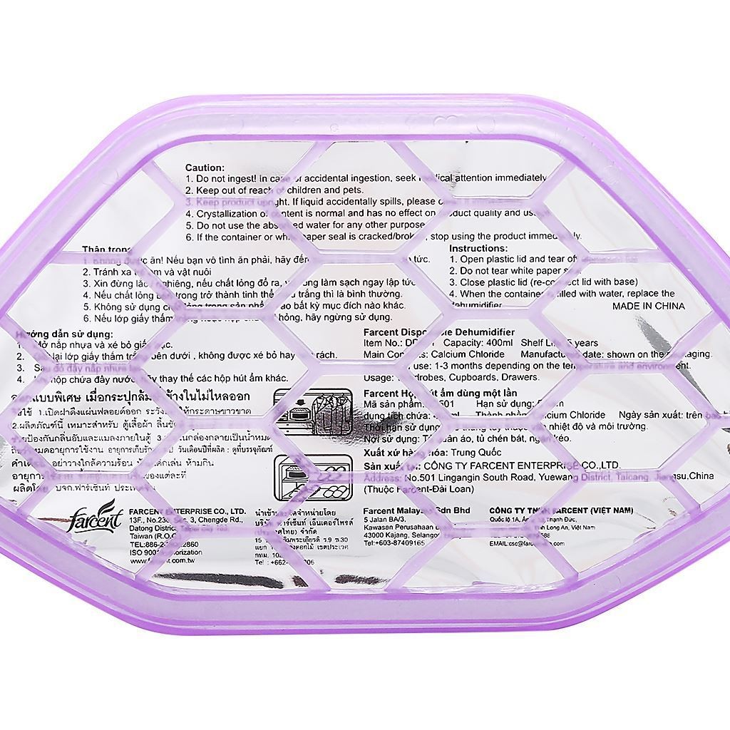 Thương hiệu sáp thơm của thương hiệu sáp thơm, túi thơm Farcent mang đến cho không gian sống của bạn hương thơm thư giãn và thoải mái hơn sau một ngày làm việc, học tập căng thẳng. Hộp hút ẩm Farcent hương thơm oải hương dễ chịu lan toả cả phòng * Thông tin sản Hộp hút ẩm khử mùi, chống mốc chính hãng Farcent để tủ quần áo,tủ giày,toilet,xe ô tô - Quy cách: hộp - Hương Hoa Hồng: Với hương hoa hồng Pháp dịu nhẹ, quyến rũ cho hương thơm dài lâu. Không ảnh hưởng đến sức khỏe. Giúp chống mùi hôi giữ cho không gian thơm mát tạo cảm giác khô thoáng dễ chịu. - Hương Hoa Oải Hương: Chiết xuất từ những thành phần an toàn với sức khỏe, hoàn toàn không gây dị ứng cho người dùng. Hương thơm hoa oải hương mang đến sự nồng nàn, thư giãn cho không gian nhà bạn. * Công dụng: - Thời tiết nóng ẩm,sẽ làm cho quần áo,giày da mốc… hạt hút ẩm sẽ hút hết khí ẩm vào trong bình giúp, giữ khô ráo đồ vật, khử mùi chua mốc cực kì hiệu quả và mang đến hương thơm dịu nhẹ cho không khí. * Hướng dẫn sử dụng: - Mở nắp nhựa và xé bỏ giấy bạc. Giữ lại lớp giấy thấm trắng bên dưới, không được xé bỏ hay làm rách. Sau đó đậy nắp nhựa lại. Khi hộp chứa đầy nước, hãy thay thế bằng hộp hút ẩm khác #farcent #tuithom #hophutam #hophutamfarcent #lavender #huonglavender #huongoaihuong #khumui #hutamkhumui #hutamchongmoc #chongmoc #huonghoahong #hophutamhoahong #hophutamtudo #hophutamgiuhuonglau #blackpinks.vn #blackpinks #blackpink