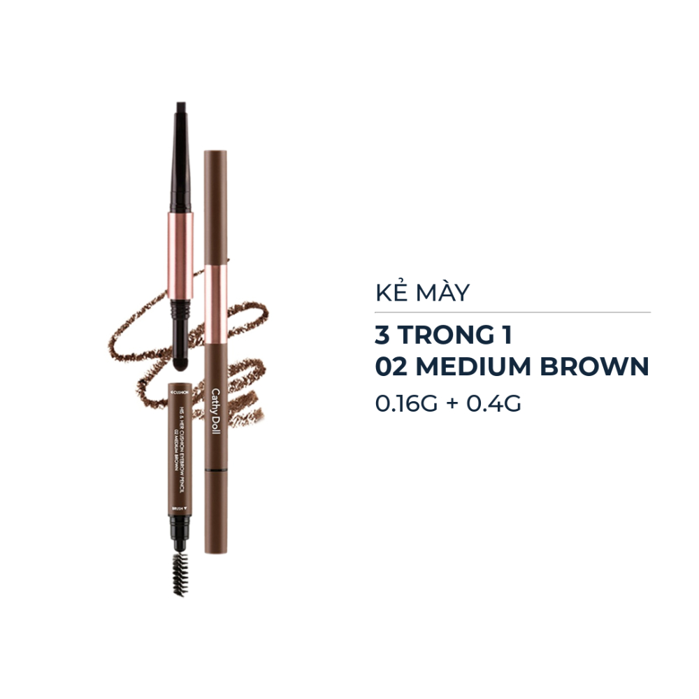 Kẻ mày Cathy Doll 3 trong 1 #02 Medium Brown 0.16g + 0.4g.