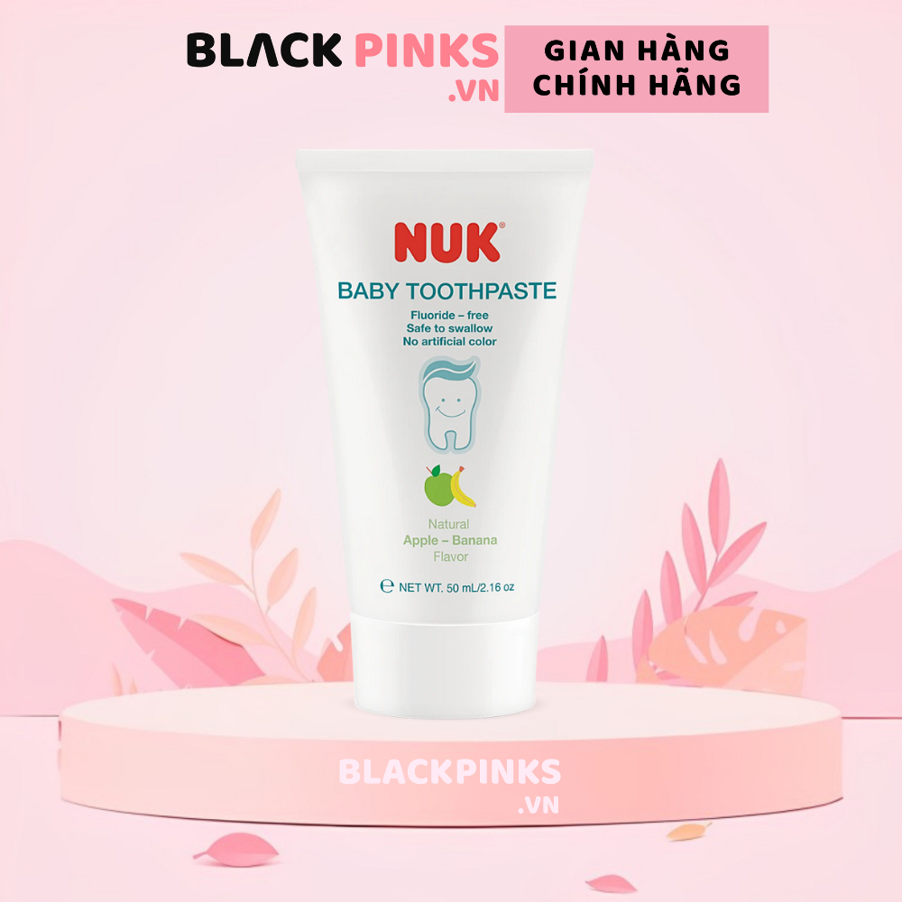 - Kem đánh răng trẻ em NUK với công thức đặc chế dành riêng cho trẻ nhỏ từ 3 tháng tuổi. Đặc biệt không chứa Flouride, Sodium Lauryl Sunfate (SLS), đường và màu tổng hợp, an toàn khi nuốt nên mẹ có thể yên tâm tập đánh răng cho bé khi còn rất nhỏ và chưa biết súc miệng.