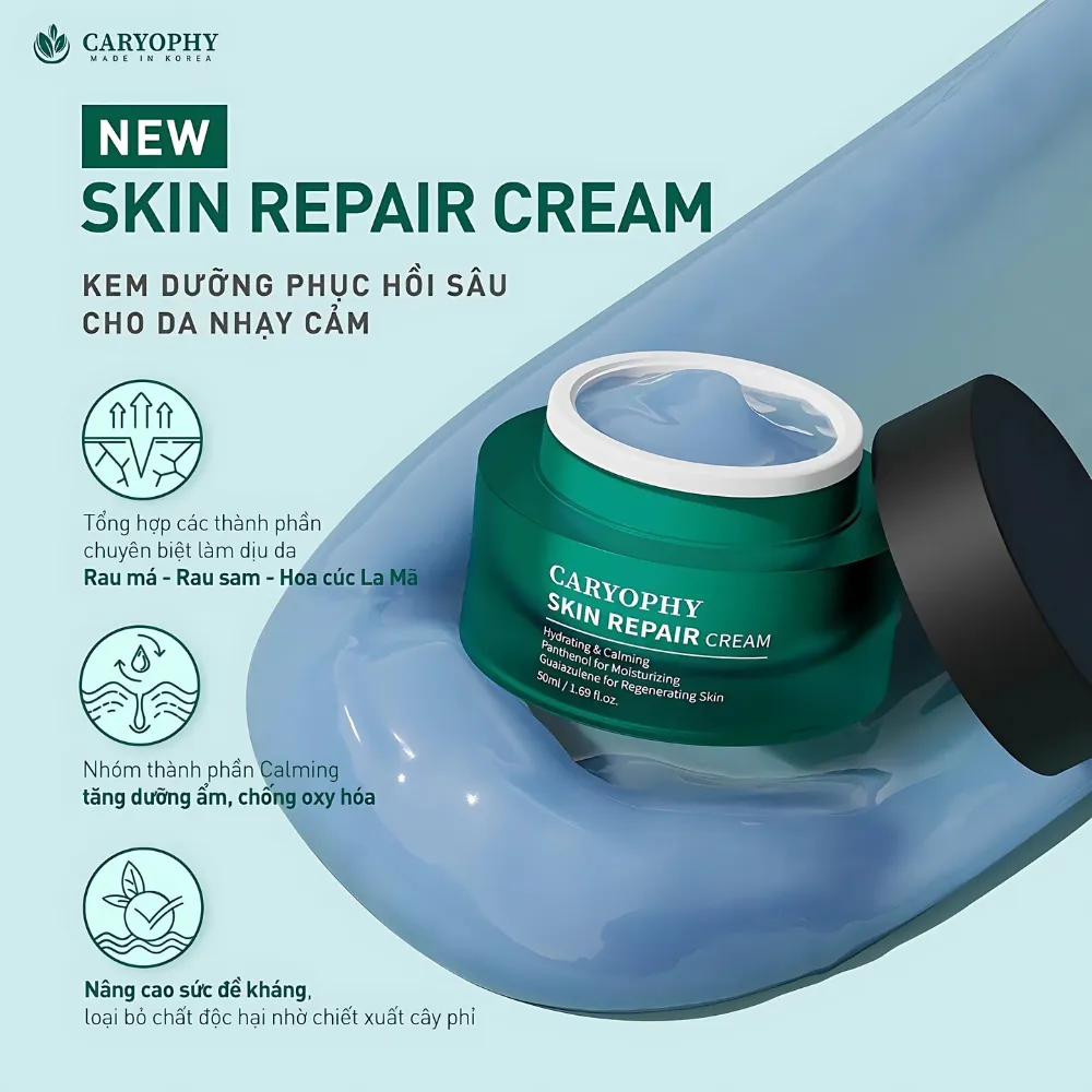 Kem dưỡng Caryophy cấp ẩm và phục hồi da 50ml là dòng kem dưỡng ẩm dành cho da nhạy cảm đến từ thương hiệu Caryophy của Hàn Quốc với công dụng phục hồi làn da đễ bị mẩn đỏ, nhạy cảm với thời tiết, kích ứng bởi các tác hại từ môi trường. Với chiết xuất tổng hợp các thành phần hoạt tính thực vật chuyên biệt về làm dịu da, sản phẩm là dòng kem dưỡng nên thử.