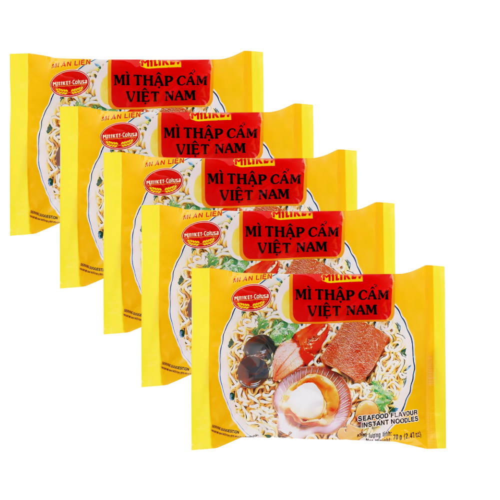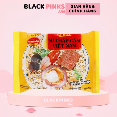 * Giới thiệu: - Mì thập cẩm Miliket gói 70g - Là loại lương thực phổ biển của mọi gia đình với sợi mì vàng dai bóng mượt cùng nước súp mì Miliket thập cẩm đậm đà và hương thơm hấp dẫn. Mì thập cẩm Miliket gói 70g tiết kiệm, tiện lợi phù hợp cho nhu cầu một bữa ăn ngon, nhanh chóng và đơn giản. * Thành phần: - VẮT MÌ - Bột mì, shortening, tinh bột khoai mì, muối, đường, chất ổn định (501(i), 452(i), 466), chất tạo xốp (500(i)), phẩm màu tự nhiên (160a(ii), 160c, 100(i)), bột tôm, chất chống oxy hoá (321). - CÁC GÓI GIA VỊ - Muối, đường, chất điều vị (621, 627, 631), gia vị (tỏi, ớt, tiêu), tôm sấy (2%), hương cua t#mitom #mianlien #migoi #mimiliket #miliket ự nhiên và tổng hợp, bột gia vị (hương tôm, hương thịt, hỗn hợp), hành lá sấy, phẩm màu tổng hợp (124), maltodextrin, chất chống đông vón (551), chất làm dầy (412), chất bảo quản (211), chất điều chỉnh độ axit (330). * Cách dùng: - Cho vắt mì, gói nêm và dầu gia vị vào tô. Chế nước sôi vừa đủ (350ml). Đậy kín tô trong 3-4 phút. Mở nắp, trộn đều là dùng được. * Bảo quản: - Để nơi khô ráo, thoáng mát tránh ánh nắng mặt trời. * Thông tin sản phẩm: - Thương hiệu: Miliket - Sản xuất tại: Việt Nam - Khối lượng: gói 70g - Hạn sử dụng: 6 tháng kể từ ngày sản xuất #mi #mianlien #migoi #mitom #miliket #migoithapcam #mithapcammiliket #mimiliketthapcamgoi70g #locmigoi #loc5goimithapcammiliket70g #locmianlienmiliket #thungmianlien #thungmianlienmiliket #thungmimiliket #thung30goimimiliketthapcam70g #thung30goimianlienmiliketthapcam70g #mithapcam #mithapcapmiliket #mimiliketthapcam #blackpinks #blackpinksvn #blackpinkscom #blackpinkscomvn #blackpink #blackpinkvn #blackpinkcom #blackpinkcomvn #blps #blpsvn #blpscom #blpscomvn #blp #blpvn #blpcom #blpcomvn