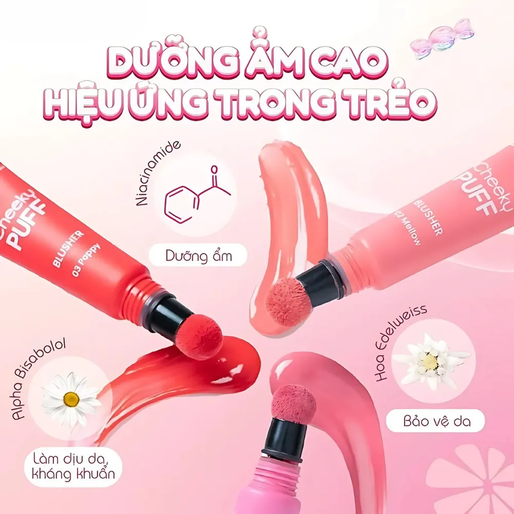 * Má Hồng Kem Silkygirl Cheeky Puff Blusher 6ml gồm 3 màu: