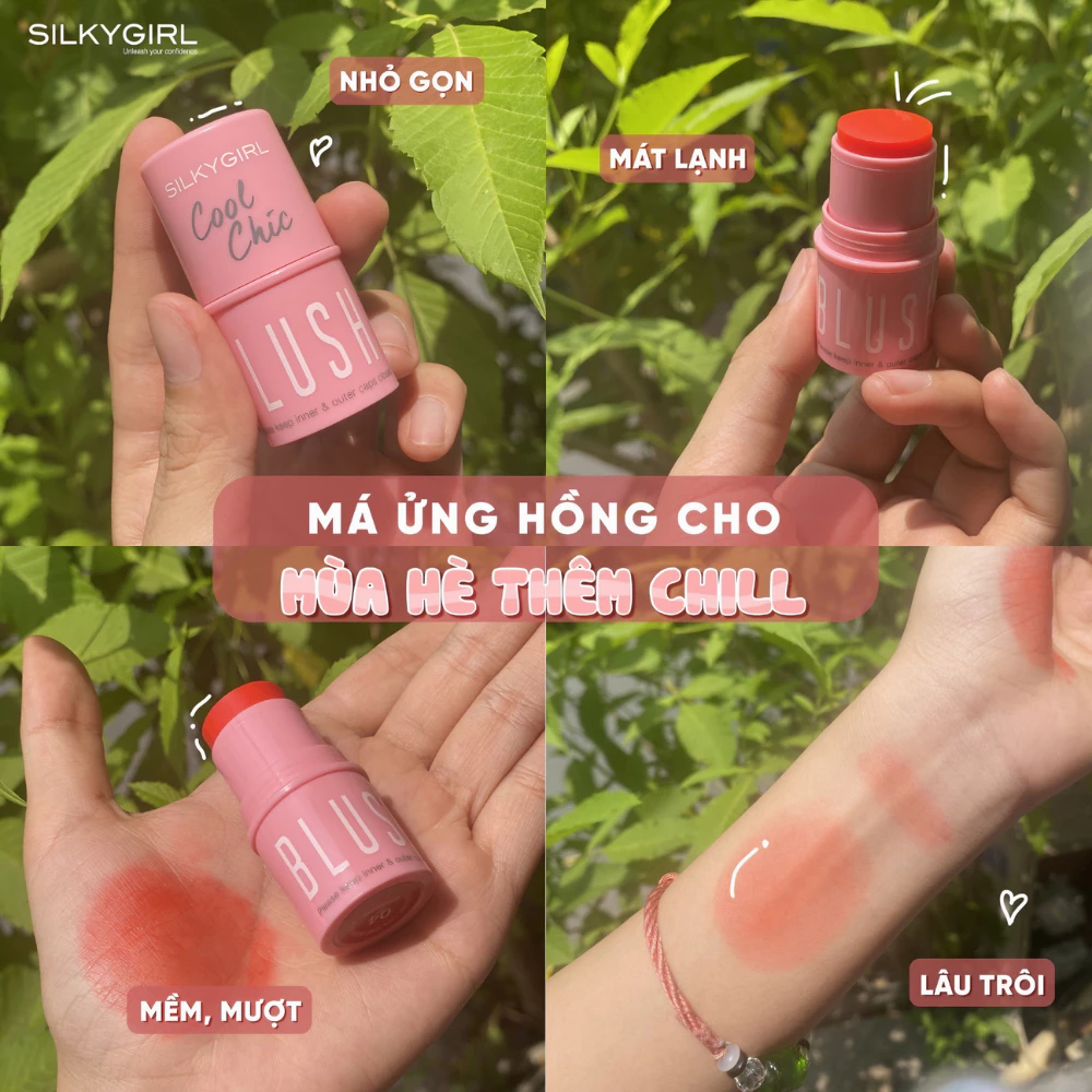 Má hồng dạng thỏi Silky Girl Cool Chic Blush Stick 4g là sản phẩm má hồng đến từ thương hiệu mỹ phẩm Silkygirl của Malaysia, với thiết kế dạng thỏi nhỏ gọn tiện lợi và chất kem nhẹ tênh, không nhờn rít, không bết dính sẽ giúp làm nổi bật ngay gò má xinh xắn của bạn. Đặc biệt, khi thoa sản phẩm lên da sẽ cảm giác mát lạnh ngay lập tức, vô cùng thích hợp cho mùa hè nóng nực.