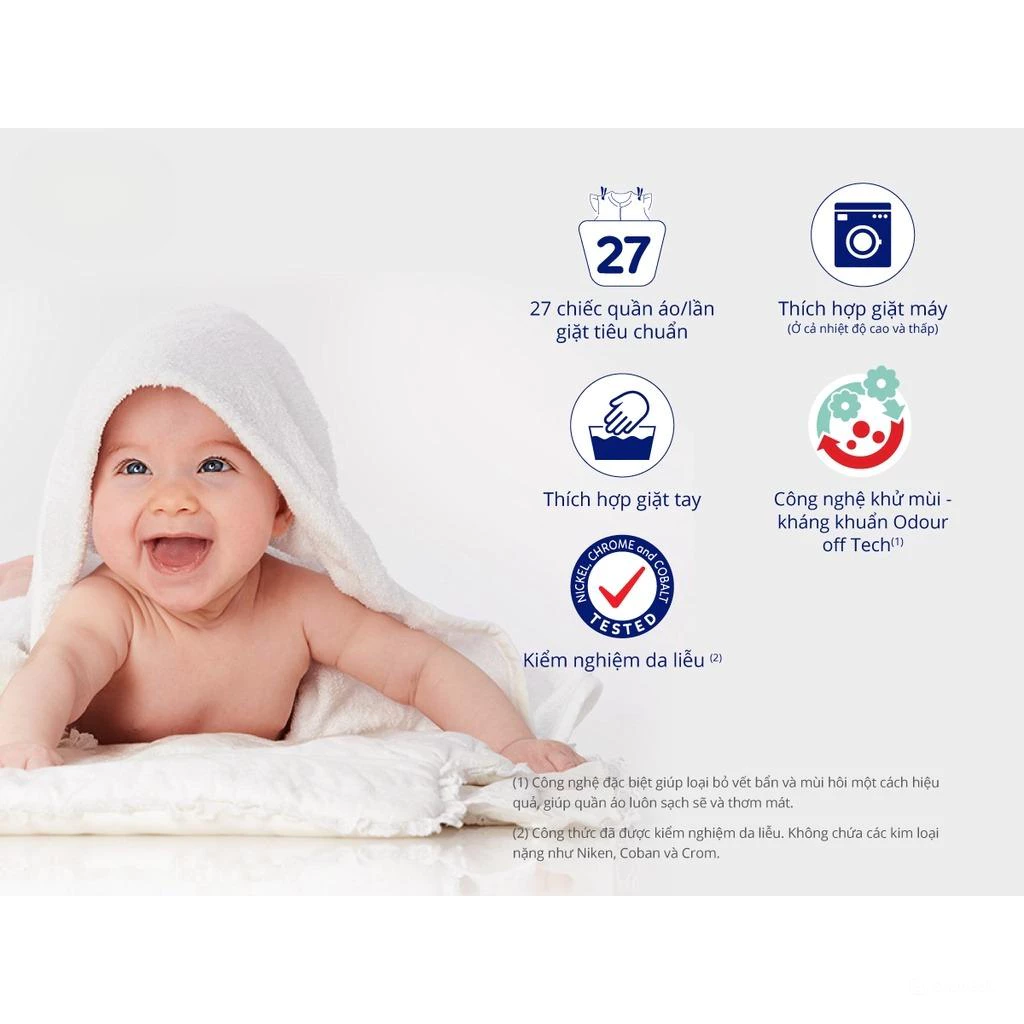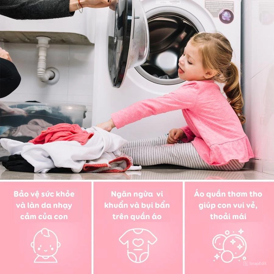 - Giữ quần áo mềm mại: Công thức đặc biệt giúp làm mềm vải, giữ cho quần áo bé luôn mềm mại và thoải mái.