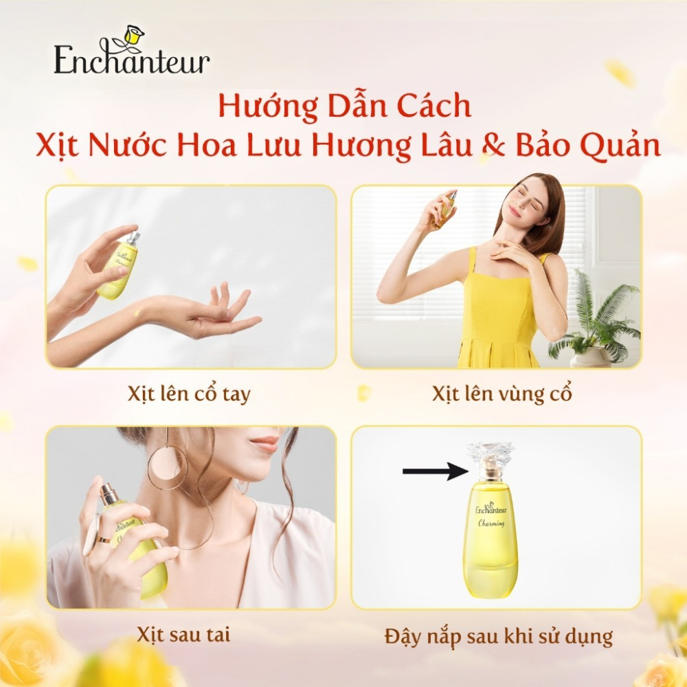 Nước hoa cao cấp Enchanteur Charming/Delightful/Sensation 50ml. Nước hoa cao cấp Enchanteur là một sản phẩm nước hoa cao cấp với hương thơm đầy tinh tế và quyến rũ, được lấy cảm hứng từ hương thơm Pháp. Thiết kế dạng xịt tiện lợi của sản phẩm này giúp bạn có thể dễ dàng mang theo trong túi xách, sẵn sàng để sử dụng bất cứ khi nào và ở bất kỳ đâu. Với nước hoa cao cấp Enchanteur này, bạn sẽ luôn tự tin và thơm ngát suốt cả ngày. * Thành phần: Ethanol, Fragrance, PPG-20 Methyl Glucose Ether, BHT, Benzophenone-3,... và các thành phần khác. * Ưu điểm sản phẩm: - Hương thơm ngọt ngào, tươi mát. - Mùi hương bền lâu, có thể giữ. - Tạo nét đẹp gợi cảm, ấn tượng của người phụ nữ. - Thiết kế chai nhỏ gọn, xinh xắn. * Đối tượng sử dụng: Phù hợp cho những quý cô văn phòng, một sự thu hút, gợi cảm đến từ Enchanteur mùi hương tự nhiên lôi cuốn quyến rủ rất tự nhiên. Mùi hương bộc lộ một cách đầy bản năng ngôn ngữ của cơ thể. * Công dụng: - Tạo mùi hương cho cơ thể giúp bạn luôn tự tin mỗi ngày. * Hướng dẫn sử dụng: - Xịt sản phẩm lên những vùng da có nhiều mạch máu như gáy, sau tai, cổ tay. - Có thể xịt ra khoảng không trước mặt và bước tới trước để mùi hương tỏa đều, lưu lại lâu hơn. * Lưu ý: - Bảo quản nơi khô ráo, thoáng mát, tránh ánh nắng trực tiếp. - Không để sản phẩm tiếp xúc với mắt, nếu có thì rửa kĩ với nước. - Để xa tầm tay trẻ em. * Thông tin sản phẩm: - Dung tích: 50ml. - Thương hiệu: Enchanteur. - Xuất xứ thương hiệu: Việt Nam. - Nhà sản xuất: Công ty TNHH Wipro Unza Việt Nam. - Sản xuất tại: Việt Nam. - Hạn sử dụng: 3 năm kể từ ngày sản xuất. #nuochoa #nuochoacaocap #nuochoaenchanteur #nuochoacaocapenchanteur #nuochoacharming #nuochoadelightful #nuochoaenchanteurcharming #nuochoaenchanteurdelightful #nuochoacaocapcharming #nuochoacaocapdelightful #enchanteur #enchanteurvietnam #blackpinks #blackpinksvn #blackpinkscom #blackpinkscomvn #blackpink #blackpinkvn #blackpinkcom #blackpinkcomvn #blps #blpsvn #blpscom #blpscomvn #blp #blpvn #blpcom #blpcomvn
