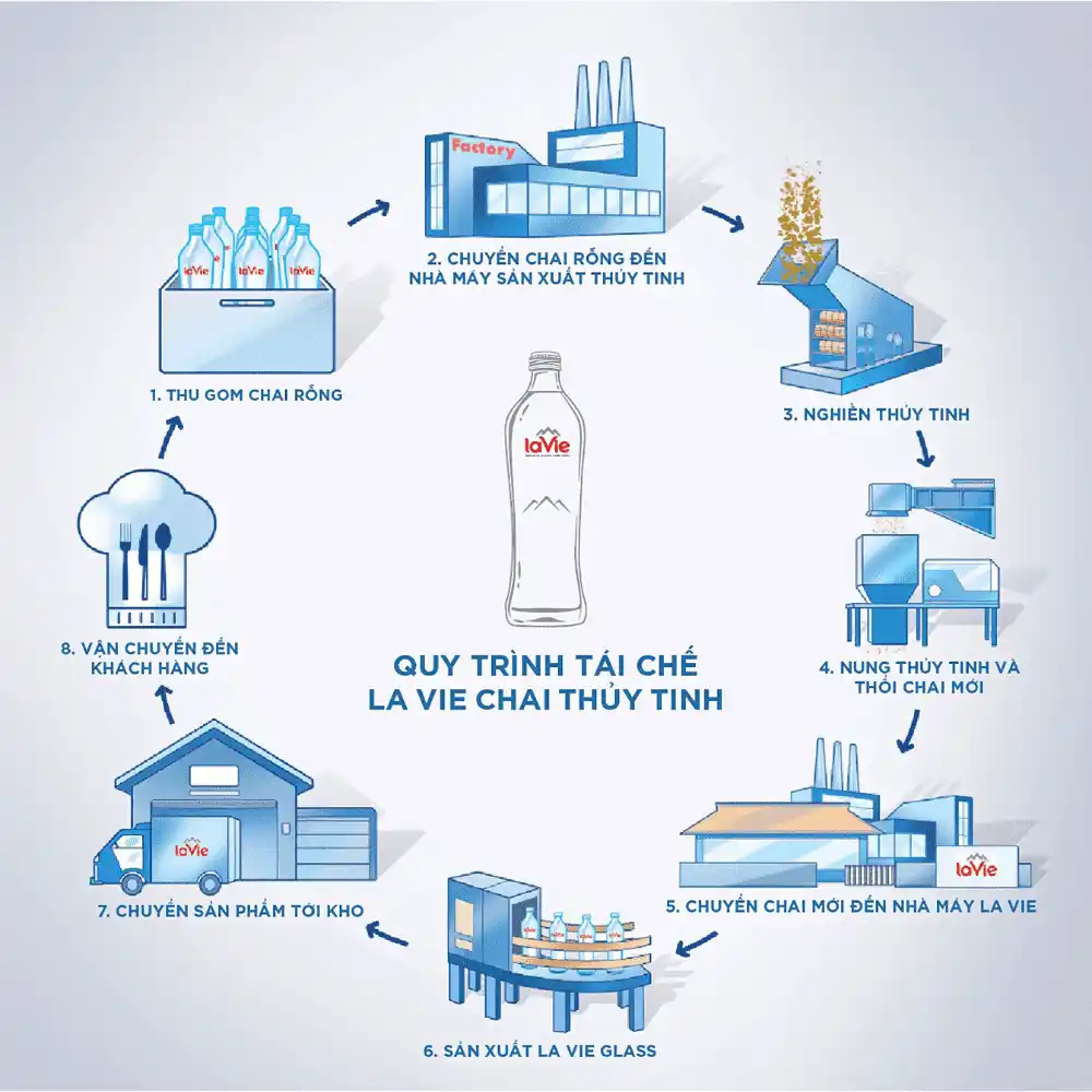 Nước khoáng thiên nhiên La Vie chai thủy tinh (La Vie Glass) loại có ga và không ga, với kiểu dáng do các chuyên gia hàng đầu của Italia thiết kế, phù hợp phân khúc khách hàng tại các khách sạn, nhà hàng cao cấp.