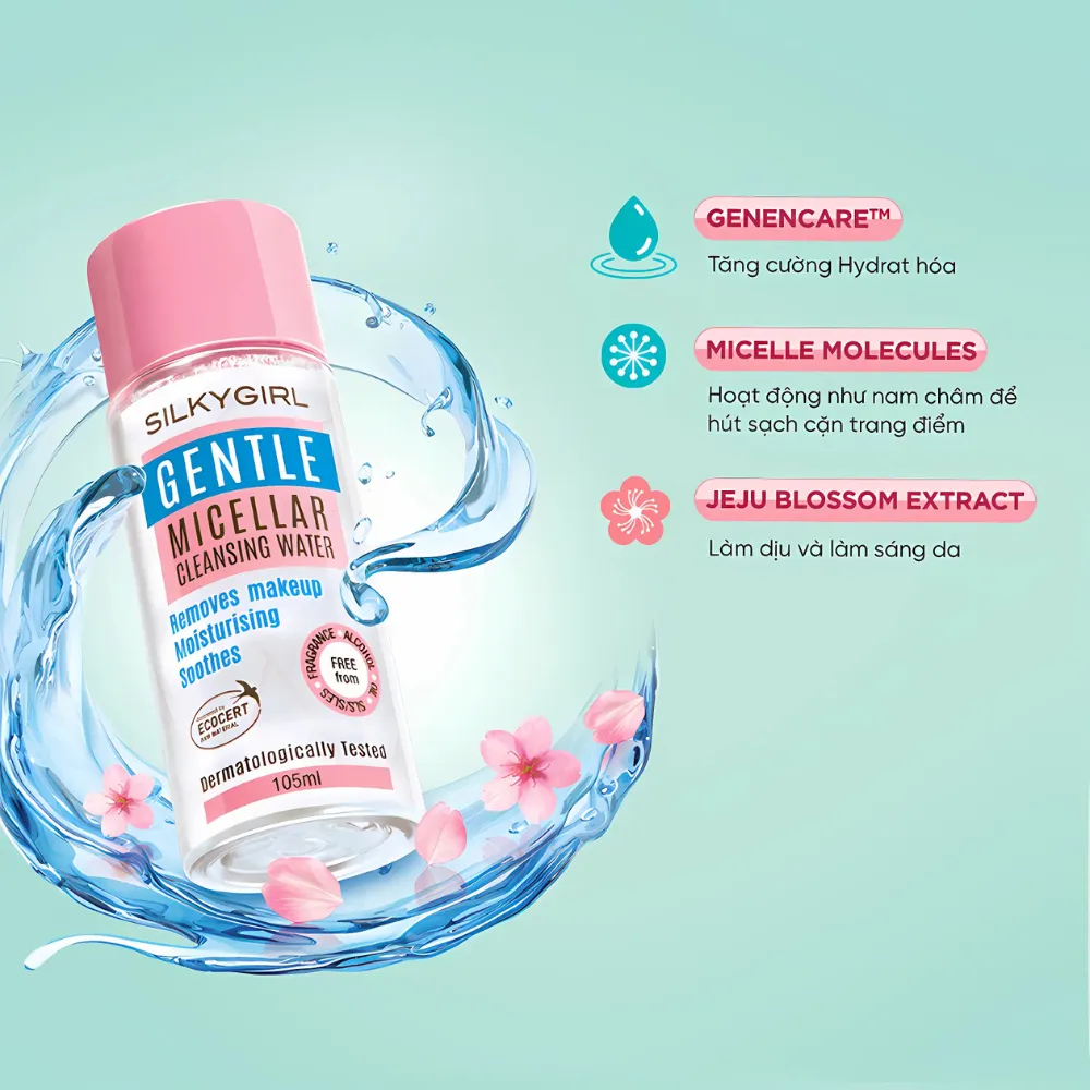 - Nước Tẩy Trang Silkygirl Làm Sạch Da Dịu Nhẹ là sản phẩm tẩy trang mặt đến từ thương hiệu mỹ phẩm Silkygirl của Malaysia, dịu nhẹ và thân thiện với làn da chứa các phân tử Micellar giúp loại bỏ mọi dấu vết của lớp trang điểm và bụi bẩn tích tụ trên khuôn mặt bạn chỉ trong một bước. Sản phẩm giúp làm sạch sâu đồng thời loại bỏ lớp trang điểm cứng đầu và không làm mất đi lớp dầu tự nhiên trên da.