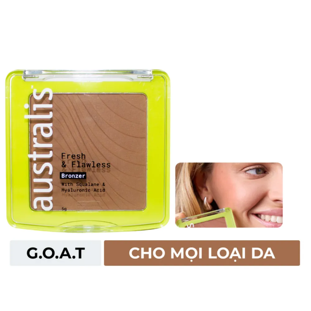 Phấn tạo khối dành cho mọi loại da – Australis Fresh & Flawless Bronzer 5.0g là dòng phấn tạo khối đến từ thương hiệu Australis – Úc, nổi bật với thành phần thuần chay. Phấn tạo khối giúp tạo góc cạnh cho gương mặt như vùng trán gần chân tóc, tạo đường sóng mũi, từ mang tai tới xương hàm giúp cho gương mặt thon gọn và thanh thoát hơn.