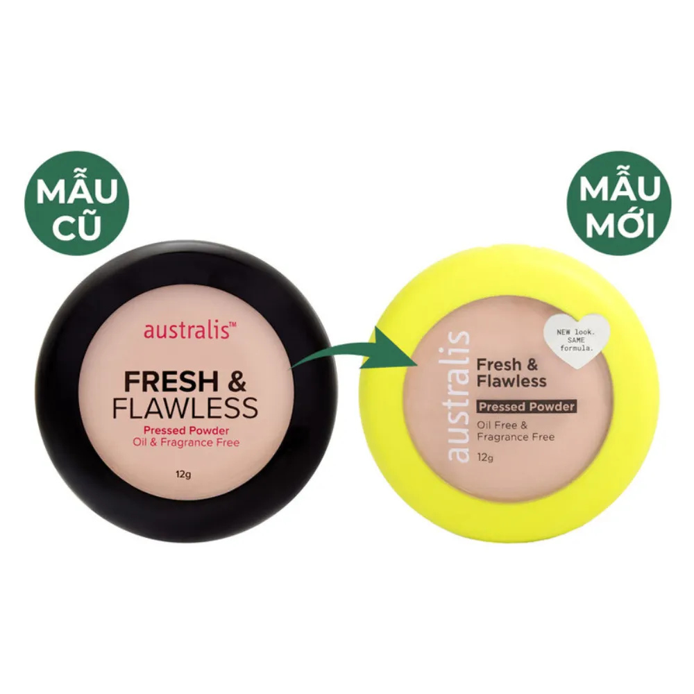 Fresh & Flawless Pressed Powder là dòng sản phẩm phấn nền và phấn phủ dạng nén 2 trong 1 đến từ thương hiệu Australis của Úc, cung cấp giải pháp tức thời cho làn da dầu, nhạy cảm hoặc kích ứng. Hạt phấn mịn, phủ nhẹ tự nhiên không gây nặng mặt đồng thời kiềm dầu tốt cho da thoáng mịn, tươi tắn suốt ngày dài mà không lo xuống tông da hay xỉn màu.