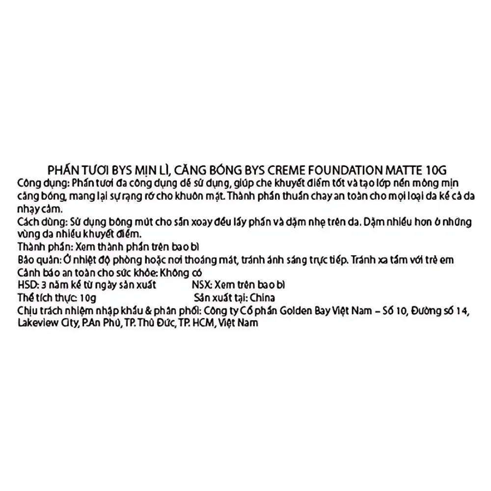 Phấn tươi Bys mịn lì căng bóng 10g là sản phẩm phấn tươi đến từ thương hiệu mỹ phẩm thuần chay BYS của Úc. Sản phẩm lành tính với thành phần thuần chay và chiết xuất từ dầu Jojoba giúp dưỡng ẩm và làm đều màu da, mang lại lớp trang điểm hoàn hảo. Phấn tươi dạng kem mịn lì không những tạo lớp che phủ cao mà còn tạo lớp nền satin căng bóng, lâu trôi cả ngày dài. Thiết kế bao bì vô cùng tinh tế, sang trọng và tiện lợi với bên trong có gương và mút tán.