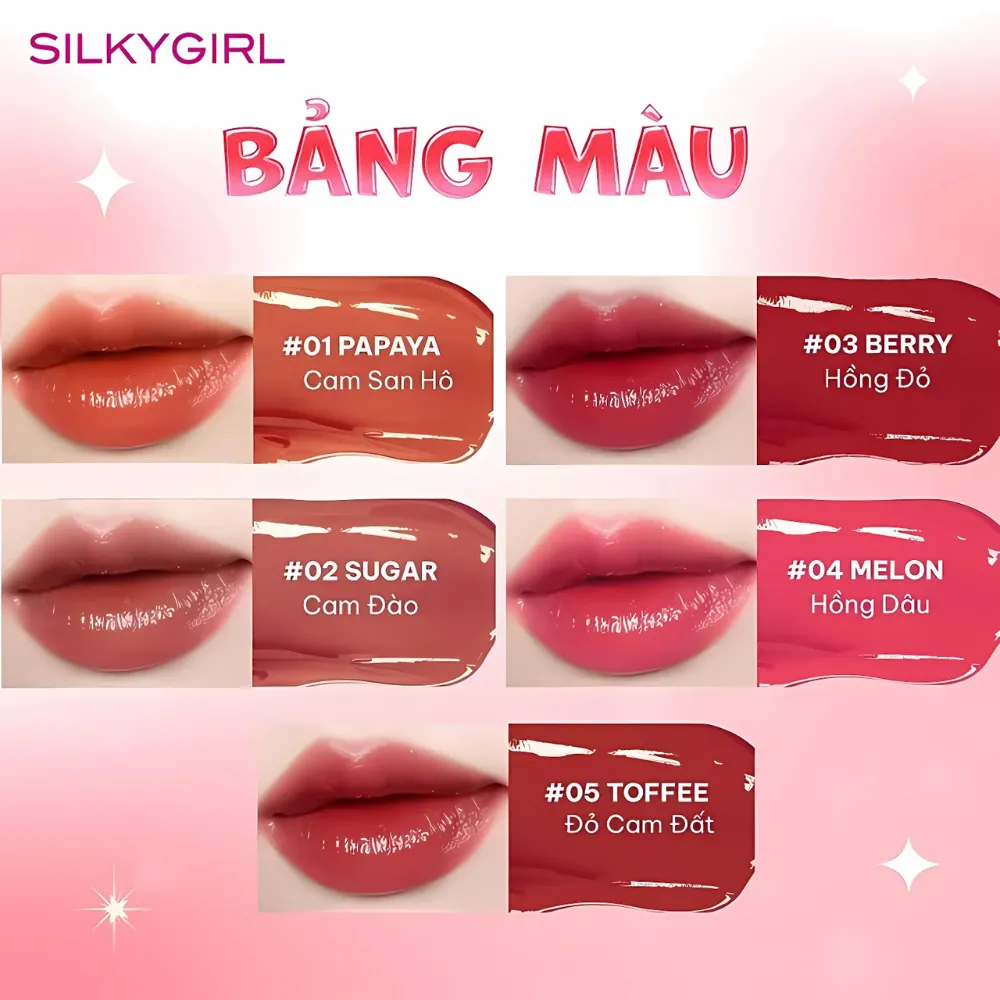 * Son Tint Bóng Silkygirl Tint Up! Lip Glass 3g với 5 màu: