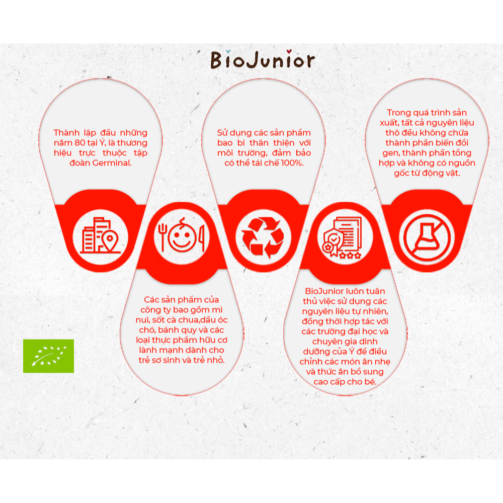 Sốt cà chua hữu cơ cho bé Bio Junior 150g dành cho bé từ 8 tháng tuổi. Sốt cà chua hữu cơ cho bé Bio Junior là sản phẩm đến từ thương hiệu Bio Junior của Ý nổi tiếng. Sốt cà chua Bio Junior với các loại rau củ, là loại thực phẩm ăn dặm hữu cơ cùng với các loại mì, nui bổ dưỡng cho bé yêu. * Thành phần: Cà chua cô đặc, nước, rau củ (cà rốt, cần tây, hành tây), dầu ô liu nguyên chất, đường mía, húng quế,… và các thành phần khác. * Đặc điểm nổi bật: - 100% thành phần hữu cơ tự nhiên. - Không chất bảo quản và phụ gia. - Hương vị thơm ngon, kích thích trẻ ăn ngon miệng. - Bổ sung vitamin từ cà chua và rau củ. * Đối tượng sử dụng: Sản phẩm dành cho bé từ 8 tháng tuổi. * Hướng dẫn sử dụng: Sử dụng lần đầu ½ muỗng cà phê (khoảng 20g) nước sốt cà chua hữu cơ cho bé BioJunior cùng với mì ống, cơm và bất kỳ món ăn yêu thích nào khác và có thể tăng dần liều lượng tùy theo độ tuổi và khẩu vị của trẻ. * Lưu ý: - Bảo quản nơi khô ráo, thoáng mát. - Tránh ánh nắng trực tiếp và nơi ẩm ướt. - Để xa tầm tay trẻ em. - Không sử dụng sản phẩm khi có mùi lạ. * Thông tin sản phẩm: - Trọng lượng: 150g. - Thương hiệu: Bio Junior. - Xuất xứ thương hiệu: Ý. - Nhà sản xuất: II Mangiarsano S.p.a. - Sản xuất tại: Ý. - Hạn sử dụng: 18 tháng kể từ ngày sản xuất. #sotcachua #sotcachuahuuco #sotcachuachobe #sotcachuaandam #sotcachuachobeandam #sotcachuahuucaandam #sotcachuabiojunior #sotcachuahuucobiojunior #sotcachuay #sotcachuanhapkhau #sotcachuaandambiojunior #cachuabiojunior #andambiojunior #andamhuucobiojunior #huucobiojunior #biojunior #nhapkhauy #biojuniorchinhhang #hangchinhhang #biojuniorchinhhang #biojuniory #biojuniornhapkhau #biojuniorvietnam #blackpinks #blackpinksvn #blackpinkscom #blackpinkscomvn #blackpink #blackpinkvn #blackpinkcom #blackpinkcomvn #blps #blpsvn #blpscom #blpscomvn #blp #blpvn #blpcom #blpcomvn