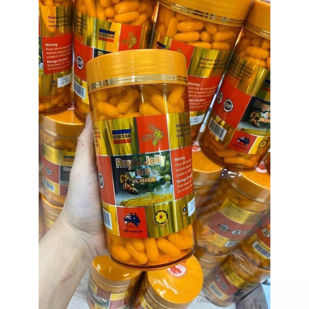 Sữa ong chúa Costar Royal Jelly 1610mg Úc (365 viên) Sữa ong chúa Costar Royal Jelly 1610mg được ưa chuộng tại Úc bởi mang lại nhiều lợi ích tuyệt vời làm đẹp da, làm giảm các dấu hiệu lão hóa sớm, sạm nám, tàn nhang, nếp nhăn. Sữa ong chúa tươi có nguồn gốc thiên nhiên bổ sung 10 HDA tốt cho miễn dịch, phòng ngừa ung thư,... Sữa ong chúa Costar Royal Jelly chiết xuất 100% từ Sữa ong chúa tự nhiên, không màu thực phẩm, không chất bảo quản. Giúp tăng quá trình trao đổi chất nhờ đó cơ thể trẻ lâu, làn da mềm mại, tươi trẻ, xóa bỏ nếp nhăn, duy trì sắc đẹp. Giúp bảo vệ sức khỏe, chống sự già nua, nâng cao tuổi thọ. Giúp sửa chữa những tế bào da bị tổn thương do hóa chất, tia xạ, tia cực tím gây ra. Công dụng: - Nâng cao sức đề kháng và miễn dịch của cơ thể. - Thúc đẩy quá trình sinh trưởng của cơ thể, chống lão hóa mạnh duy trì tuổi thanh xuân - Hỗ trợ giảm nám, tàn nhang hiệu quả. - Giúp da căng mịn trắng hồng tự nhiên - Sữa ong chúa Costar Royal Jelly hàm lượng 1610mg 6% 10- HDA Nâng cao năng lực tư duy và khả năng của trí nhớ; - Tăng cường giảm hiệu quả. - Tăng cường sức co bóp cơ tim, hạ huyết áp và phòng chống tích cực tình trạng vữa xơ động mạch; - Bảo hộ và cải thiện công năng tạo huyết của tủy xương, làm tăng số lượng và chất lượng các tế bào máu; - Thúc đẩy sự hồi phục và tái sinh của tế bào các tổ chức như thận, gan, thần kinh...; - Phòng Chống ung thư và phóng xạ mạnh mẽ - Cải thiện công năng của các tuyến nội tiết, tăng cường khả năng sinh dục và sinh sản; - Phòng chống tình trạng khô âm đạo ở phụ nữ khi bước vào tuổi trung niên. - Bổ sung sinh lực cho đàn ông. - Cải thiện sức khoẻ ở người già. - Dùng liều cao có tác dụng an thần, phòng chống tình trạng mất ngủ... Cách dùng: - Ngày uống 01 lần vào buổi sáng sớm . - Do hoàn toàn chiết xuất từ thiên nhiên nên có thể bẻ viên sữa ong chúa ra và thoa tinh chất bên trong trực tiếp lên da ngày 2 lần/ sáng và tối. - Ngoài ra, sữa ong chúa còn được dùng làm mặt nạ dưỡng da như: trộn với lòng đỏ trứng gà hoặc mật ong để đắp, tuần 2 lần. Bảo quản: - Bảo quản sản phẩm tại nơi khô ráo, nhiệt độ dưới 30 độ C, tránh ánh nắng trực tiếp. - Đậy kín nắp hộp sau khi sử dụng. - Để xa tầm tay trẻ em. Thông số sản phẩm: - Thương hiệu: Costar. - Xuất xứ thương hiệu: Úc. - Thể tích: 365 viên/hộp. #suaongchua #suaong #vienuongsuaong #vienuongnganngualaohoa #vienuongsuaongchua #blackpinks #blackpinksvn #blackpinkscom #blackpinkscomvn #blackpink #blackpinkvn #blackpinkcom #blackpinkcomvn #blps #blpsvn #blpscom #blpscomvn #blp #blpvn #blpcom #blpcomvn