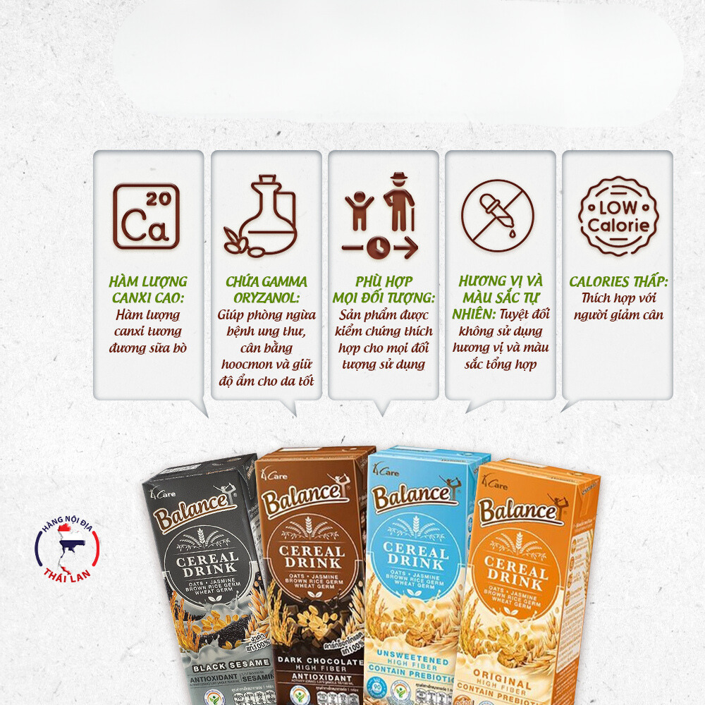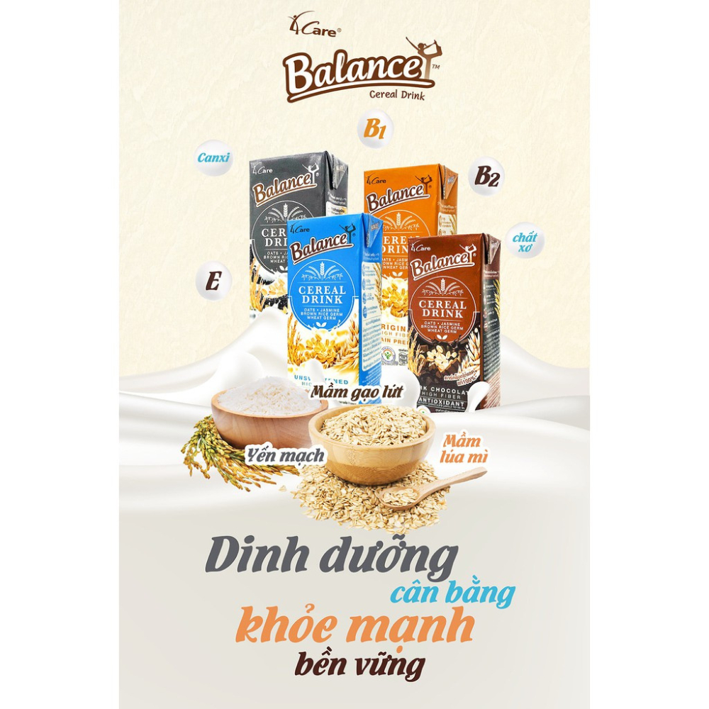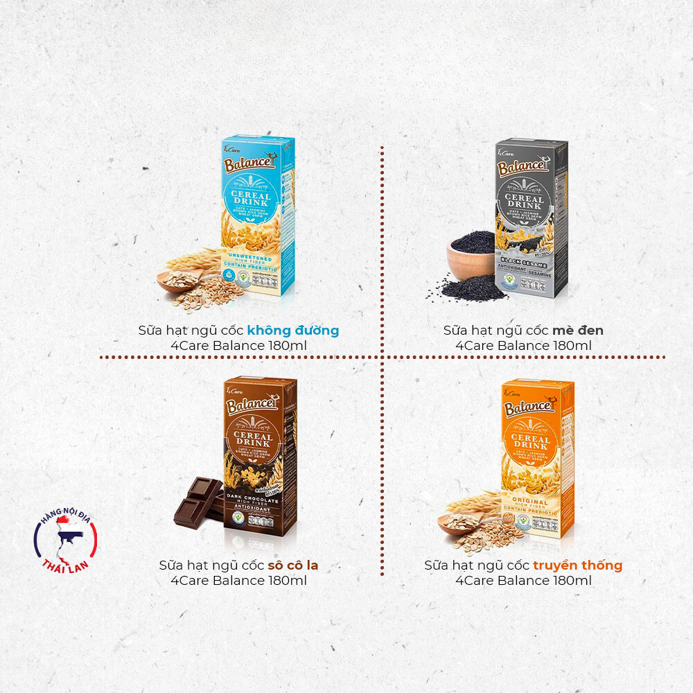 Sữa hạt ngũ cốc không đường/mè đen/truyền thống/socola 4Care Balance 180ml. Sữa hạt ngũ cốc 4Care Balance là sản phẩm của thương hiệu 4Care Balance đến từ Thái Lan. Với các thành phần hữu cơ, sữa hạt ngũ cốc 4Care Balance giúp bổ sung canxi từ tảo biển tự nhiên. * Thành phần: Nước mầm gạo lứt hoa nhài, nước mầm lúa mì, nước yến mạch, chất xơ, INS 471 (chất nhũ hóa nguồn gốc thực vật), INS 418 (chất ổn định nguồn gốc thực vật),… và các thành phần khác. * Ưu điểm sản phẩm: - Tiện dụng, dung tích nhỏ 180ml, thích hợp mang đi xa (đi học, du lịch...). - Không chứa chất bảo, phẩm màu và hương vị tổng hợp. - Không chứa sữa và đậu nành. - Không chứa thành phần nguồn gốc động vật. - Sản phẩm VEGAN. * Đối tượng sử dụng: - Phù hợp với mọi lứa tuổi (trẻ em từ 12 tháng trở đi), phụ nữ mang thai, người bị dị ứng lactose, người ăn kiêng... * Lưu ý: - Bảo quản nơi khô ráo, thoáng mát. - Tránh ánh nắng trực tiếp và nơi ẩm ướt. * Thông tin sản phẩm: - Dung tích: 180ml. - Thương hiệu: 4Care Balance. - Xuất xứ thương hiệu: Thái Lan. - Sản xuất tại: Thái Lan. - Hạn sử dụng: 6 tháng kể từ ngày sản xuất. #sua #suagao #suagaothailan #suagaohuuco #suagaotrang #suagaotim #suagaokhongduong #suagaohuongvani #suagaotrangthailan #suagaotimthailan #suahuuco #suakhongduong #suavani #suagaovani #suathai #suathailan #sua4carebalance #suagao4carebalance #suagaotrang4carebalance #suagaotim4carebalance #suahuuco4carebalance #suakhongduong4carebalance #4carebalance #4carebalancethailan #4carebalancevietnam #blackpinks #blackpinksvn #blackpinkscom #blackpinkscomvn #blackpink #blackpinkvn #blackpinkcom #blackpinkcomvn #blps #blpsvn #blpscom #blpscomvn #blp #blpvn #blpcom #blpcomvn
