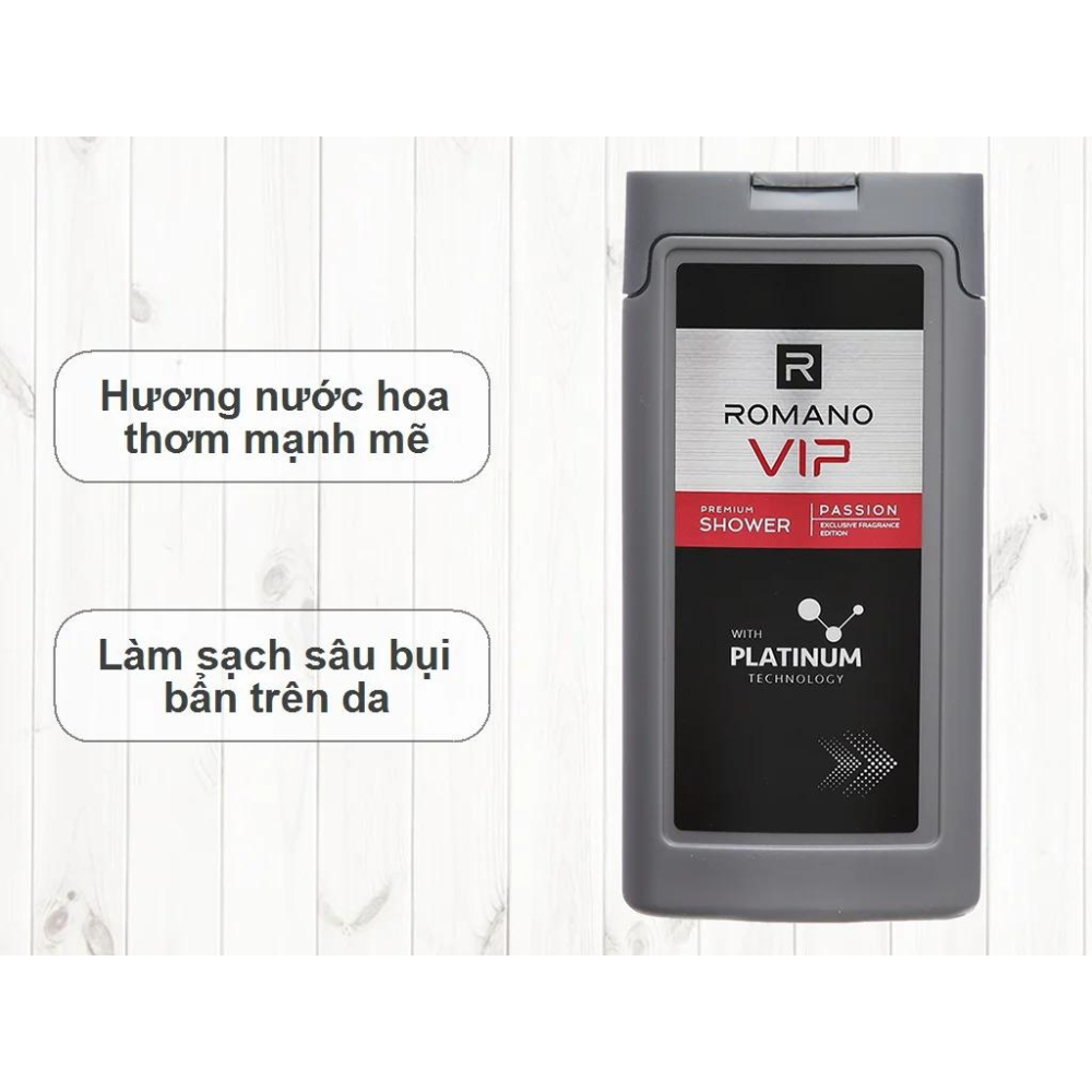 Sữa tắm hương nước hoa cao cấp Romano VIP Vision/Passion 180g. Sữa tắm hương nước hoa cao cấp Romano VIP là sản phẩm đến từ thương hiệu Romano. Là nhãn hiệu hóa mỹ phẩm dành riêng cho nam giới của Tập đoàn đa đất nước Wipro Unza - 1 trong những dịch vụ và tiếp thị sản phẩm chăm sóc cá nhân hàng đầu Đông Nam Á. Với danh mục sản phẩm đa dạng, bao gồm sản phẩm chăm sóc tóc, chăm sóc da, gel vuốt tóc, lăn khử mùi, nước hoa,... Romano giúp chăm sóc cơ thể toàn diện cho phái mạnh, giúp phái mạnh tự tín vượt qua mọi thử thách để làm cho chủ cuộc chơi. * Thành phần: Water, Sodium Laureth Sulfate, Ammonium Lauryl Sulfate, Cocamidopropyl Betaine, Dimethiconol,,... và các thành phần khác. * Ưu điểm sản phẩm: - Sữa tắm bổ sung thành phần giữ ẩm Sodium PCA, đem đến một làn da thật sạch, mịn màng, đầy sức sống. - Được bổ sung thành phần giữ ẩm Sodium PCA, đem đến một làn da thật sạch, đầy sức sống. - Romano Vip là sự kết hợp hoàn hảo của các nhóm hương chanh, oải hương và hương gỗ khơi dậy cảm giác trong lành, thơm mát từ biển cả. - Với hương thơm độc đáo Romano Vip tạo cho quí ông một phong cách lịch lãm, đầy quyến rũ. - Mùi hương nhẹ nhàng, tinh tế, nam tính sẽ cuốn hút mọi ánh mắt. * Đối tượng sử dụng: - Sản phẩm có thể sử dụng cho tất cả nam giới. * Công dụng: - Làm sạch da, đầy sức sống. - Kết hợp tinh tế giữa phong cách lịch lãm cùng chất trẻ trung hiện đại, là biểu tượng mới của người đàn ông đẳng cấp, sành điệu. * Hướng dẫn sử dụng: - Làm ướt da. - Cho sữa tắm lên da hoặc bông tắm ướt để tạo bọt. - Xoa đều lên da sau đó tắm sạch với nước. * Lưu ý: - Bảo quản nơi khô ráo, thoáng mát, tránh ánh nắng trực tiếp. - Không để sản phẩm tiếp xúc với mắt, nếu có thì rửa kĩ với nước. - Để xa tầm tay trẻ em. - Đậy kín nắp sau khi sử dụng. * Thông tin sản phẩm: - Trọng lượng: 180g. - Thương hiệu: Romano. - Xuất xứ thương hiệu: Việt Nam. - Nhà sản xuất: Công ty TNHH Wipro Unza Việt Nam. - Sản xuất tại: Việt Nam. - Hạn sử dụng: 3 năm kể từ ngày sản xuất. #suatam #suatamromano #suatamnuochoa #suatamclassic #suatamattitude #suatamforce #suatamgentleman #suatamnam #suatamhuongnuochoa #suatamromanonuochoa #suatamnuochoaclassic #suatamnuochoaattitude #suatamnuochoaromano #duongda #suatamduongda #romano #romanovietnam #blackpinks #blackpinksvn #blackpinkscom #blackpinkscomvn #blackpink #blackpinkvn #blackpinkcom #blackpinkcomvn #blps #blpsvn #blpscom #blpscomvn #blp #blpvn #blpcom #blpcomvn