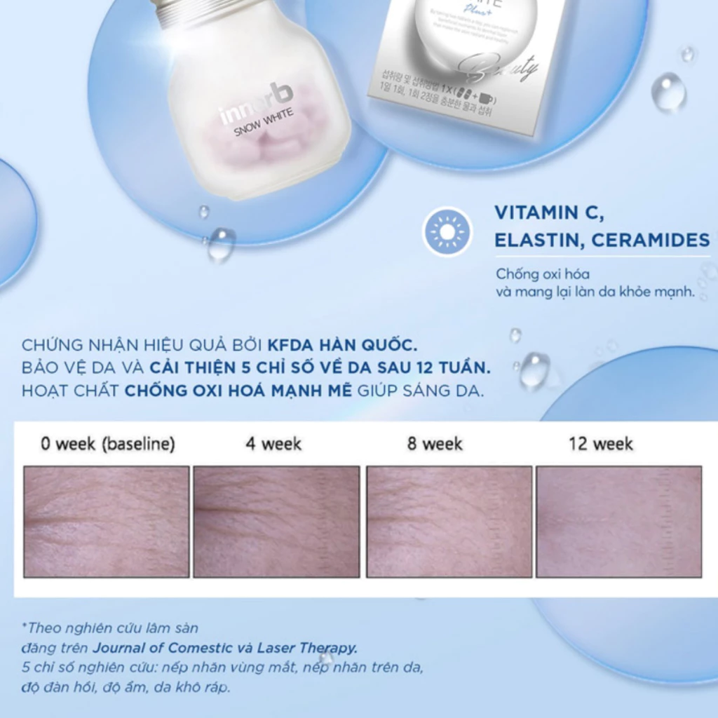 Thực phẩm bảo vệ sức khỏe InnerB Snow White 56 Viên * Giới thiệu về sản phẩm: - Dòng sản phẩm thực phẩm chức năng dạng viên uống đến từ thương hiệu InnerB - thương hiệu trực thuộc CJ CheiJedang. - Công ty con của Tập đoàn CJ chuyên sản xuất và kinh doanh mặt hàng thực phẩm bằng ứng dụng công nghệ sinh học. Viên uống InnerB giúp bổ sung các thành phần dưỡng chất thiết yếu cho sức khoẻ và làn da như Hyaluronic Acid, Collagen, Vitamin C,... từ đó cải thiện và chăm sóc làn da từ sâu bên trong, mang đến cho bạn một làn da mịn mượt, căng mướt và khỏe mạnh. * Đối tượng sử dụng: - Những ai có nhu cầu cải thiện tình trạng da sạm / xỉn màu, mong muốn dưỡng da sáng mịn từ bên trong. - Những ai có làn da lão hoá - nếp nhăn,... mong muốn sở hữu làn da tươi trẻ, căng mịn, giảm quá trình lão hoá da. * Thành phần sản phẩm: - Mỗi 2 viên nang mềm chứa: Axit hyaluronic 120 mg. - Phụ liệu viên: Dầu hạt nho, sáp ong, lecithin (chất chống oxy hóa). - Phụ liệu vỏ nang: gelatin, glyxerin, D-Sorbitol (chất tạo ngọt tổng hợp), titan dioxit (chất tạo màu tổng hợp) vừa đủ 1 viên. * Công dụng: - Chiết xuất lá hoa Honey Bush lên men 15 bước độc quyền cấp bằng sáng chế của CJ cải thiện hiệu quả tình trạng nếp nhăn, tăng cường độ đàn hồi, dưỡng ẩm đem lại làn da săn chắc. - Ức chế sự hình thành của các hắc sắc tố melanin, các đốm nâu, dưỡng da đều màu. - Thành phần vitamin C 100mg tăng cường khả năng chống oxy hoá, cải thiện thâm sạm, tối màu da đem lại làn da sáng khoẻ. - Bảo vệ da khỏi các tác hại của ánh nắng mặt trời, hỗ trợ sáng da. * Hướng dẫn sử dụng: -Sử dụng 2 viên/ngày với lượng nước vừa đủ. * Lưu ý và hướng dẫn cách bảo quản: - Không vượt quá liều khuyến cáo, giữ xa tầm tay trẻ em. - Không sử dụng sản phẩm khi mẫn cảm với bất kỳ thành phần nào của sản phẩm. - Không dùng sản phẩm nếu tem bảo vệ không nguyên vẹn. - Đậy kín nắp sản phẩm sau khi sử dụng. - Bảo quản nơi khô ráo và tránh ánh nắng mặt trời và những nơi gần nguồn nhiệt, ẩm. Thực phẩm bảo vệ sức khỏe InnerB Snow White 56 Viên #thucphambaovesuckhoe #thucphambaove #thucphambaovesuckhoeinnerbsnowwhite56vien #thucphambaovesuckhoeinnerb #thucphambaovesuckhoeinnerbsnowwhite #innerb #innerbsnowwhite #thucphamchucang #baovesuckhoe #beauty #chamsocda #blackpinks #blackpinksvn #blackpinkscom #blackpinkscomvn #blackpink #blackpinkvn #blackpinkcom #blackpinkcomvn #blps #blpsvn #blpscom #blpscomvn #blp #blpvn #blpcom #blpcomvn
