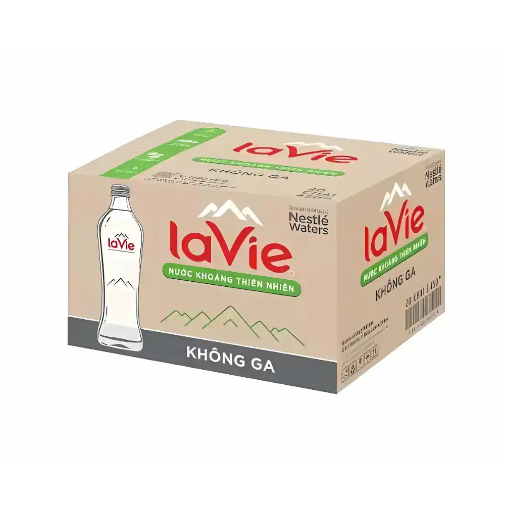 Nước khoáng thiên nhiên La Vie chai thủy tinh (La Vie Glass) loại có ga và không ga, với kiểu dáng do các chuyên gia hàng đầu của Italia thiết kế, phù hợp phân khúc khách hàng tại các khách sạn, nhà hàng cao cấp.