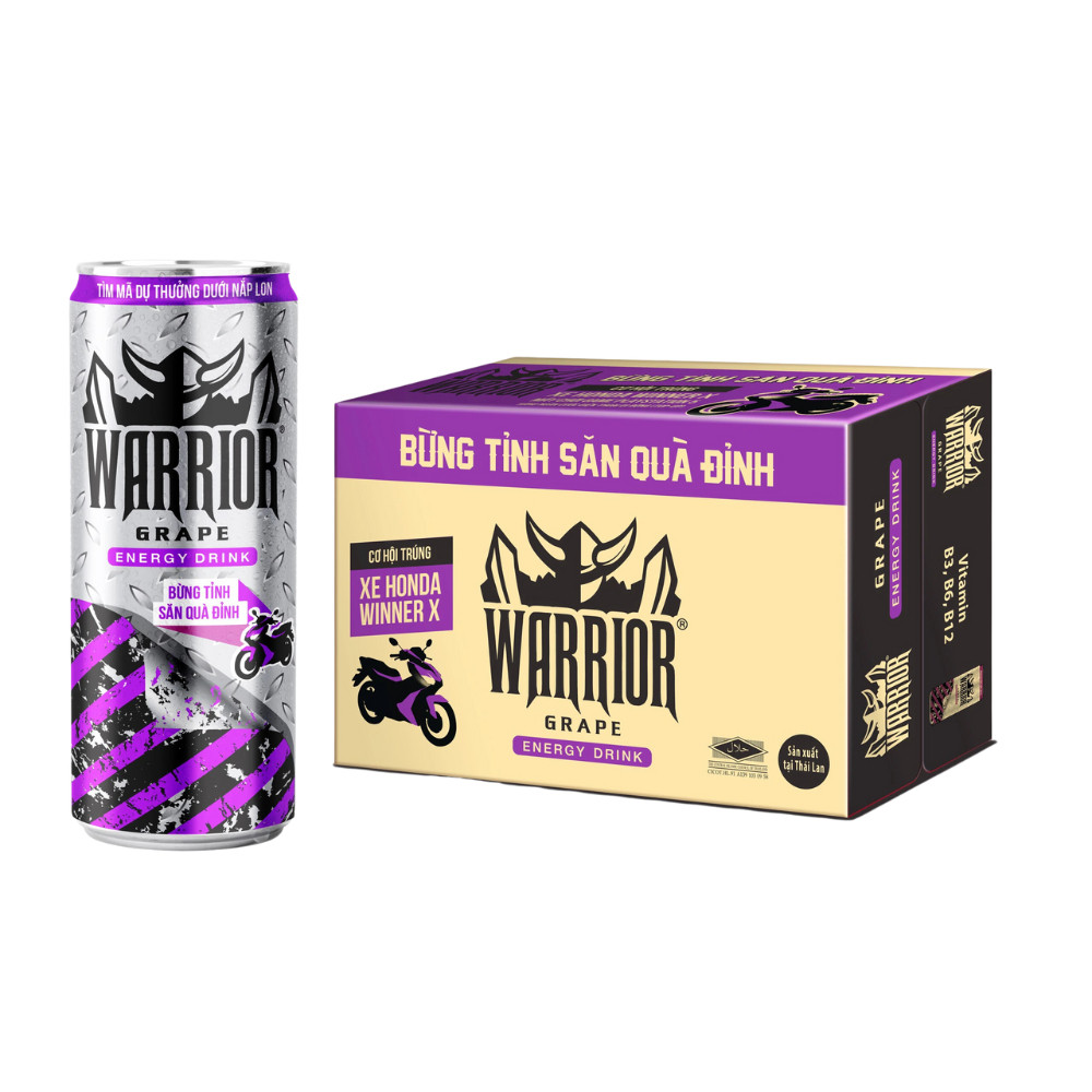 Nước Tăng Lực Warrior với hương vị dâu ngọt dịu, không gắt cổ đồng thời có chứa nhóm vitamin B (B3, B6, B12) giúp thúc đẩy quá trình trao đổi chất, cung cấp năng lượng bền bỉ cho cơ thể. * Thông tin sản phẩm: - Thương hiệu: WarrioWarrior - Xuất xứ: Việt Nam. - Hạn sử dụng: 12 tháng kể từ ngày sản xuất. - Thành phần: Chiết xuất nhân sâm, nước, đường mía, vitamin B6 (4 mg/L), vitamin B12 (4,6mcg/L), vitamin B3 (30 mg/L), chất tạo Carbon (Carbon dioxide (INS290), taurine (3000mg/L), chất điều chỉnh độ axit (Citric acid (INS330)), Sodium citrate (INS331iii), hương vị nhân tạo, caffeine (240 mg/L), chất bảo quản (Sodium benzoate (INS211), Inositol (76g mg/L), chất tạo ngọt nhân tạo (INS955), chất tạo màu nhân tạo (INS129, INS1333). * Công dụng: - Cung cấp nước và tăng cường năng lượng cho các hoạt động hàng ngày, vận động thể thao, tập luyện, được sản xuất trên quy trình công nghệ hiện đại được kiểm duyệt chặt chẽ. * Hướng dẫn sử dụng: Dùng trực tiếp. Ngon hơn khi uống lạnh. * Bảo quản: Nơi khô ráo, thoáng mát, tránh ánh nắng trực tiếp. #nuoc #nuoctangluc #nuoctanglucthailan #warrior #nuoctanglucwarrior #nuoctanglucwarriorchai #nuoctanglucwarriorlon #thung #thungnuoctangluc #nuoctangluclon325ml #chainuoctangluc #325ml330ml #nuocchuacaffein #nuoctangluc325ml #nuocwarrior #nuocngot #nuocngotthat #thungnuocnhotthailan #stingthai #thung24chai #thung24lon #sting #nuoctanglucvinho #nuoctanglucvidau #nuoctangluclondau #nuoctangluclonnho #thung24lonvinho325ml #thung24chaividau330ml #thung24chaivinho330ml #thung24lonvidau325ml #vinmart #vinmartcom #vinmartcomvn #vinmartvn