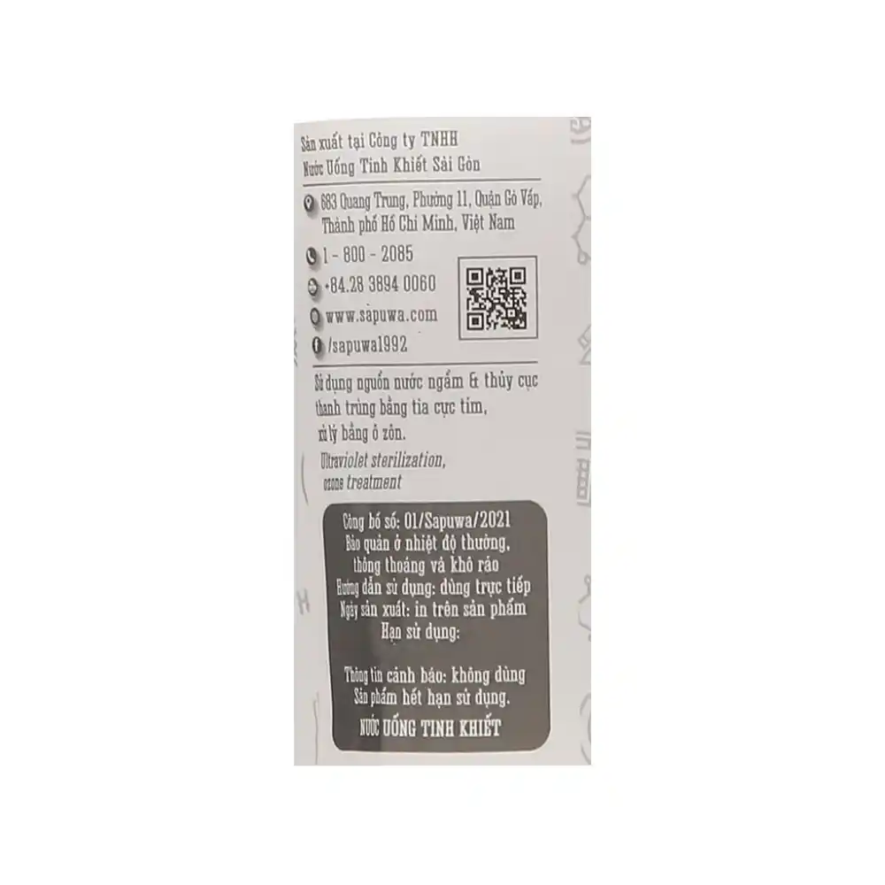 - Tên sản phẩm: Nước uống tinh khiết Sapuwa