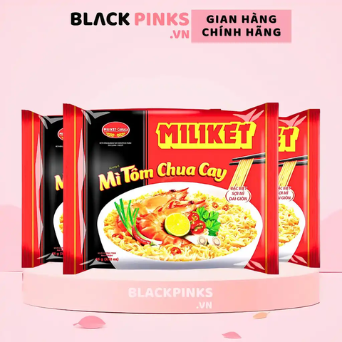 Mì Miliket vị mì tôm chua cay là sự kết hợp giữa sợi mì dai ngon và nước dùng chua cay đậm đà, mang đến bữa ăn nhanh tiện lợi và đầy hương vị.