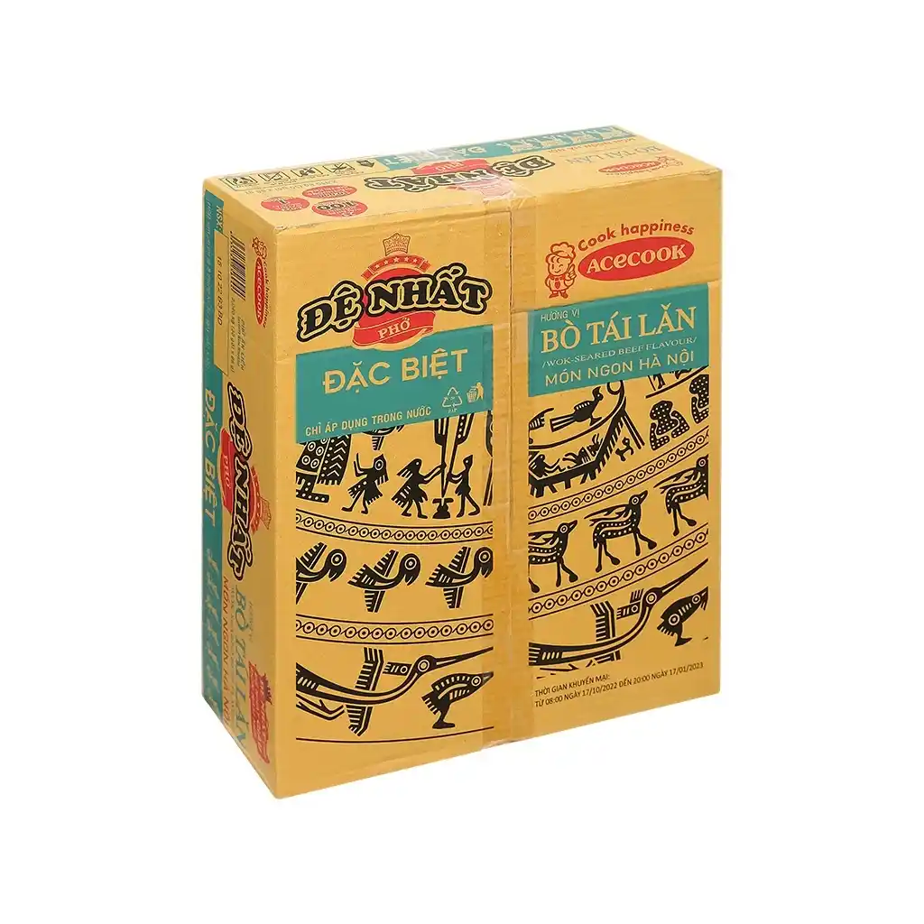 Phở bò ăn liền hương vị chuẩn Hà Nội đậm đà với sợi phở mềm dai và nước súp phở Đệ Nhất thanh ngọt, thơm lừng. Phở bò tái lăn Đệ Nhất gói 68g chính hãng chất lượng, cho bạn món ăn nhanh, ngon như phở nấu, phù hợp cho cả gia đình.