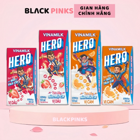Lốc 4 hộp sữa trái cây Vinamilk Hero vị dâu/cam 110/180ml – Hương vị thơm ngon, bổ sung vitamin và khoáng chất cho bé năng động