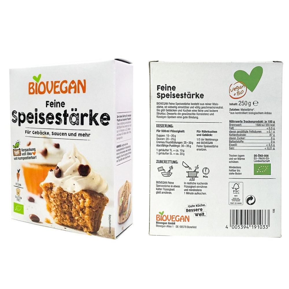 Tinh bột bắp hữu cơ Biovegan 250g. * Giới thiệu sản phẩm: Tinh bột bắp hữu cơ Biovegan 250g được làm từ tâm trắng của hạt bắp, không chứa thành phần biến đổi gen, không hoá chất nhân tạo, cực kỳ an toàn cho sức khoẻ. * Thành phần: - Thành phần: 100% tinh bột bắp hữu cơ. * Công dụng sản phẩm: - Tinh bột bắp hữu cơ dùng để làm đặc, làm chất tạo độ kết dính cho các loại nước sốt, súp, bánh pudding và các loại kem. Ngoài ra, tinh bột bắp hữu cơ còn được dùng làm bột phụ trợ cho đồ nướng, các loại bánh nướng, bánh quy, bông lan. - Thành phần: 100% tinh bột bắp hữu cơ. * Hướng dẫn sử dụng: - Sử dụng cho 500ml chất lỏng: Pha tinh bột bắp trong một ít chất lỏng nguội cho đến khi bột hòa tan hoàn toàn, Đổ hỗn hợp còn lại vào phần chất lỏng nóng và đun sôi trong vòng 1 phút. - Sử dụng cho các công thức làm bánh ngọt: Thay thế ⅓ lượng bột trong công thức bằng tinh bột bắp hữu cơ. * Lưu ý và cách bảo quản: - Nơi khô ráo thoáng mát. Tránh tiếp xúc trực tiếp với ánh nắng mặt trời. * Thông tin sản phẩm: - Thương hiệu: Biovegan. - Xuất xứ: Đức. - Nơi sản xuất: Đức. - Hạn sử dụng: 24 tháng kể từ ngày sản xuất. #tinhbotbap #tinhbotbaphuuco #tinhbotbap250g #tinhbotbaphuuco250g #tinhbotbap250ghuuco #tinhbotbapbiovegan #tinhbotbap250gbiovegan #tinhbotbapbiovegan250g tinhbotbapbiovegan250gchinhhang tinhbotbapbiovegan250gantoan tinhbotbapbiovegan250gchatluong tinhbotbapbiovegan250guytin #biovegan #bioveganduc #biovegantinhbotbap #botbap #blackpinksvn #blackpinkscom #blackpinkscomvn #blackpink #blackpinkvn#blackpinkcom #blackpinkcomvn #blps #blpsvs #blpscom #blpscom #blp #blpvn #blpcom #blpcomvn