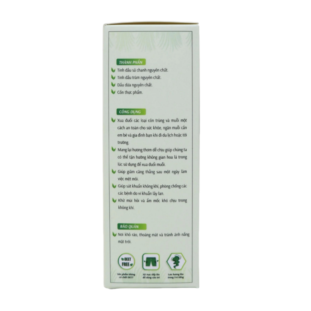 Tinh dầu đuổi muỗi là một sản phẩm hữu hiệu để bảo vệ gia đình bạn khỏi côn trùng phiền toái. *Công dụng: - Xua đuổi các loại côn trùng và muỗi một các an toàn cho sức khỏe, bảo vệ gia đình bạn đặc biệt là trẻ em không bị muỗi đốt khi vận động, học tập hay trong các chuyến du lịch. - Mang lại hương thơm dễ chịu giúp chúng ta có thể tận hưởng mùi hương tự nhiên từ sả chanh và dừa khi dùng sản phẩm - Mùi hương từ tinh dầu còn giúp giảm căng thẳng, mệt mỏi sau một ngày dài làm việc. - Giúp sát khuẩn không khí, phòng chống các bệnh do vi khuẩn lây lan. - Khử mùi hôi và ẩm mốc khó chịu trong không khí. *Thành phần: - Tinh dầu sả chanh nguyên chất. - Tinh dầu tràm nguyên chất - Dầu dừa nguyên chất - Cồn thực phẩm *Hướng dẫn sử dụng: - Xịt trực tiếp lên quần áo để có tác dụng lâu hơn. - Xịt vào không khí trong các không gian sinh hoạt như phòng ngủ, phòng khách, nhà bếp, nhà vệ sinh,...để xua đuổi côn trùng. Tránh xịt lên mắt và các vùng nhạy cảm. *Bảo quản: - Nơi khô ráo thoáng mát. - Tránh ánh nắng trực tiếp, nơi có nhiệt độ cao hoặc ẩm ướt. - Đậy kín sau khi sử dụng - Để xa tầm tay trẻ em. *Thông tin sản phẩm: - Xuất xứ thương hiệu: Việt Nam - Nơi sản xuất: Việt Nam - Hạn sử dụng: Xem trên bao bì sản phẩm #tinhdau #tinhdauxit #tinhdauduoimuoi #tinhdauduoikien #tinhdauxitduoimuoikien #nganmuoi #ngankien #sachanhdua #xmos #tinhdauxmos #tinhdauxmosduoimuoikien #tinhdauxuaduoicontrung #tinhdauchongmuoi #tinhdauhuongsachanhdua #tinhdauthom #baovegiadinh #nhacua #chinhhang #tinhdauvietnam #blackpinks #blackpinksvn #blackpinkscom #blackpinkscomvn #blackpink #blackpinkvn #blackpinkcom #blackpinkcomvn #blps #blpsvn #blpscom #blpscomvn #blp #blpvn #blpcom #blpcomvn