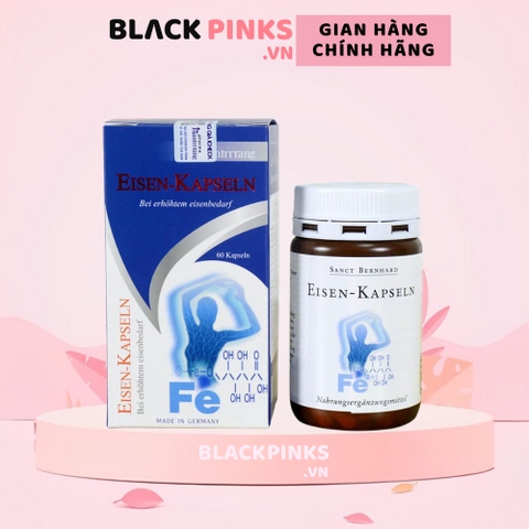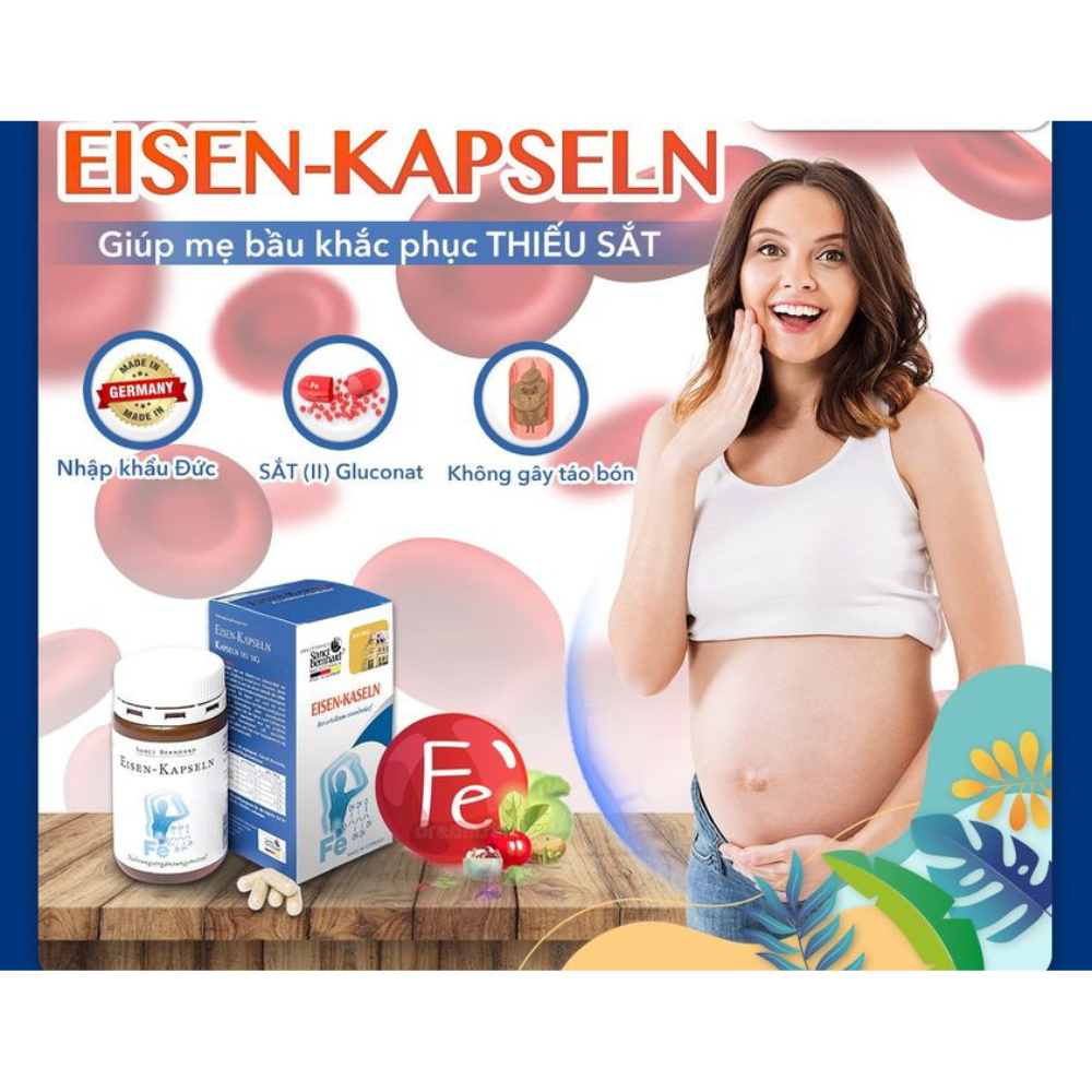 Viên uống bổ sung sắt Eisen Kapseln là một sản phẩm không còn quá xa lạ trên thị trường, là sản phẩm của Đức được sản xuất bởi Sanct Bernhard với công nghệ sản xuất hoàn toàn tiên tiến. Sản phẩm có công dụng giúp bổ sung sắt cho người bị thiếu sắt, mẹ bầu đang mang thai hoặc đang cho con bú, hỗ trợ cho người bị thiếu máu do thiếu sắt.