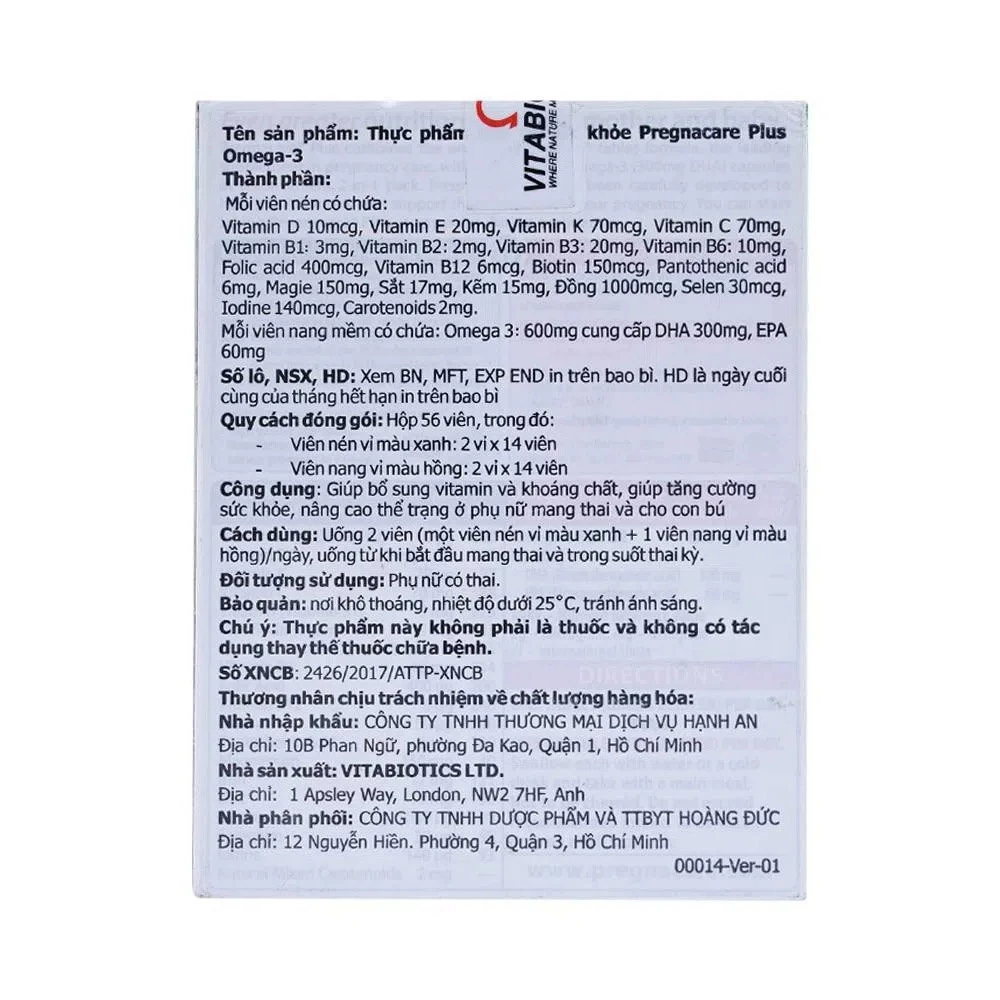 * Thông tin chi tiết của vitamin mẹ bầu Pregnacare Plus Omega-3 56 viên: