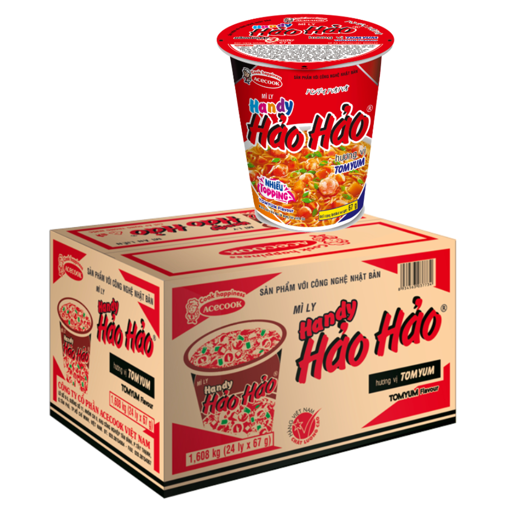 Thông tin sản phẩm Mì ăn liền dạng ly tiện lợi, hương vị thơm ngon hấp dẫn được nhiều người yêu thích. Thùng 24 ly mì Handy Hảo Hảo Tomyum ly 67g chính hãng mì Hảo Hảo uy tín, chất lượng với hương vị Tomyum kiểu Thái đặc trưng, chua chua cay cay hòa quyện hài hòa. Loại mì: Mì nước Vị mì: Tom Yum Sợi mì: Sợi tròn, nhỏ Khối lượng: 67g Thành phần: VẮT MÌ - Bột mì, dầu cọ, tinh bột khoai mì, muối, đường, nước mắm, chất điều vị, chất ổn định, chất nhũ hóa, chất điều chỉnh độ acid, bột nghệ, phẩm màu curcumin tự nhiên, chất chống oxy hóa CÁC GÓI GIA VỊ - Dầu cọ, đường, muối, chất điều vị, bột kem không sữa, các gia vị, protein sất hương vị tôm, cà rốt sấy, bột tôm, bột sữa dừa, tinh bột khoai mì, bột mực, chất chống đông vón, hương liệu (hương tomyum tự nhiên, hương hồi tổng hợp, hương chanh giống tự nhiên), phẩm màu paprika oleresin tự nhiên, nước mắm, lá chanh Cách dùng: Mở nắp ly đến vạch có mũi tên, cho các gói gia vị vào ly. Chế nước sôi đến vạch của ly, đậy nắp lại và chờ 3 phút. Trộn đều và dùng được ngay. Bảo quản: Bảo quản nơi khô ráo, thoáng mát, tránh ánh nắng trực tiếp. Không để gần hóa chất hoặc sản phẩm có mùi mạnh. Thương hiệu: Hảo Hảo (Việt Nam) Sản xuất tại: Việt Nam #mitom #milyhaohao #mianlien #haohao #handyhaohao #handyhaohaotomyum #acecook #mitomyum #blackpinks #blackpinksvn #blackpinkscom #blackpinkscomvn #blackpink #blackpinkvn #blackpinkcom #blackpinkcomvn #blackpink.vn_hochiminh #blackpinks.vn_hanoi #blps #blpsvn #blpscom #blpscomvn #blp #blpvn #blpcom #blpcomvn